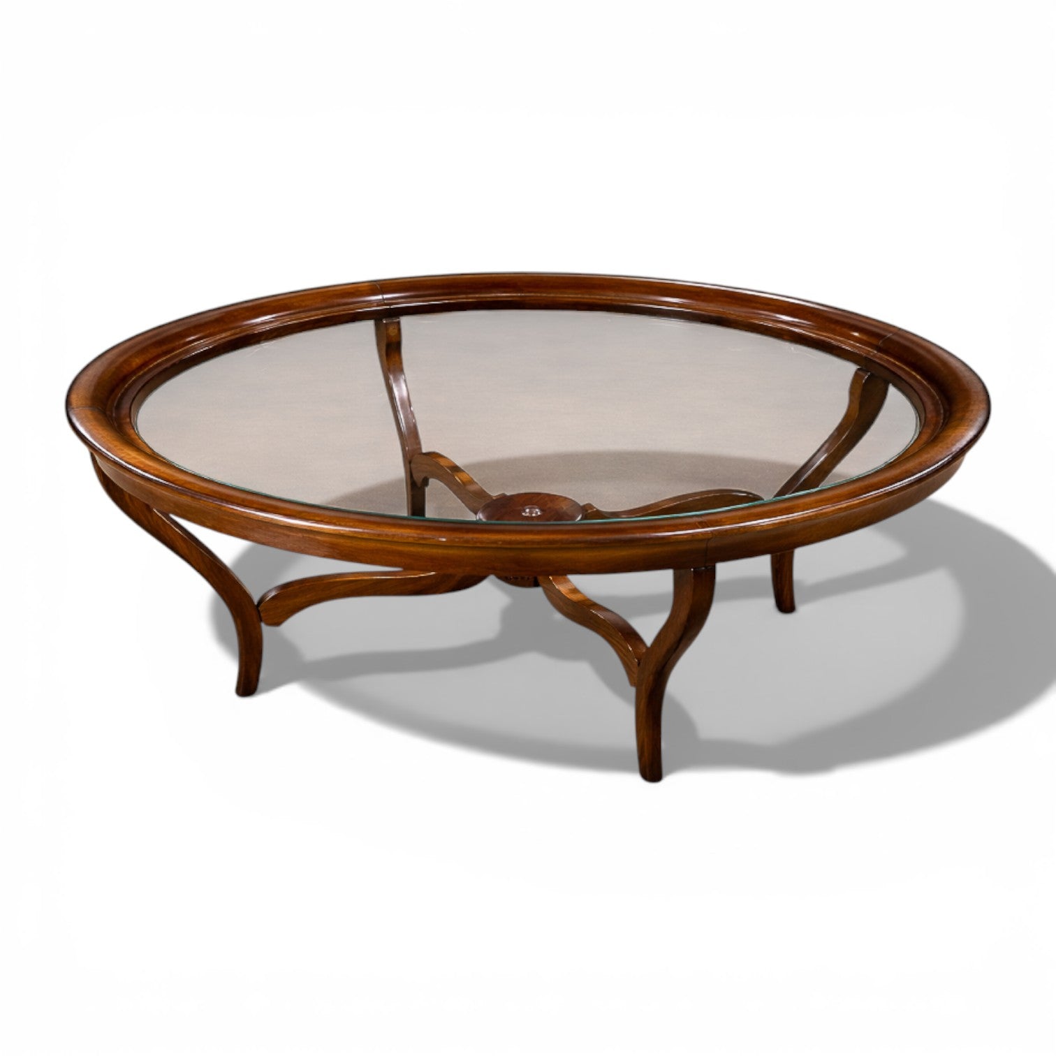 Circular Coffee Table in Caviúna Wood & Glass by Giuseppe Scapinelli, Brazil, 1950s — Lot 867