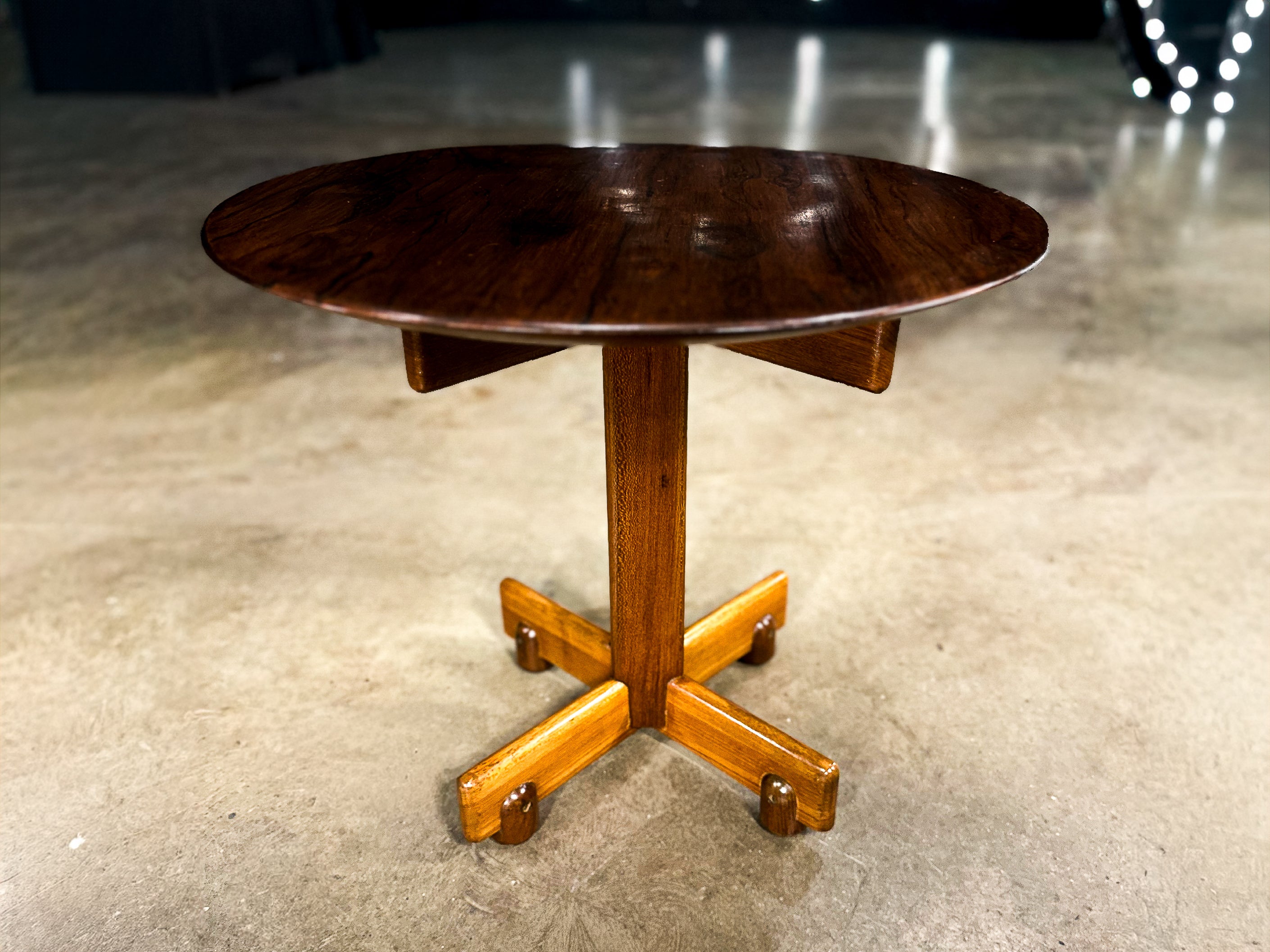 Round Side Table in Brazilian Rosewood with Brass Feet, Brazil, 1950s - Lot 854A