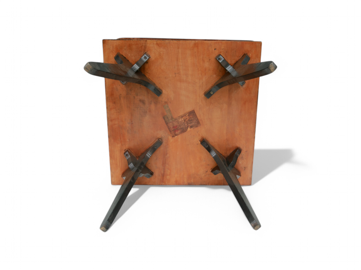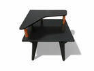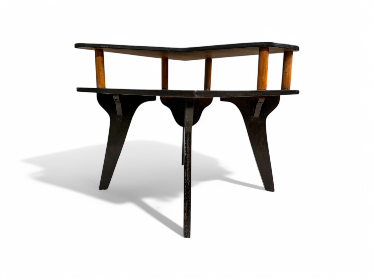 Available right now, this Mid Century Modern accent/phone table in plywood designed by Jose Zanine Caldas in the fifties is beautiful! The table consists of four legs and two shelves painted in black. Zanine’s manufacturing seal is under the table top. The look of this gorgeous piece will easily blend into almost any type of home environment.