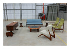 Round Coffee table in Hardwood & Black Leather, Unknown, 1970s - Lot 558