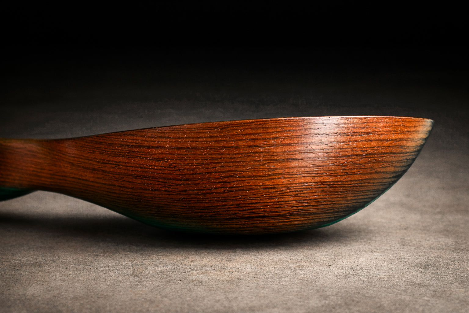 The piece highlights the natural character of the rosewood, with rich tonal variation and pronounced grain patterns visible across the surface. The smooth, carved interior and softly contoured edges emphasize the material’s depth and natural luster.