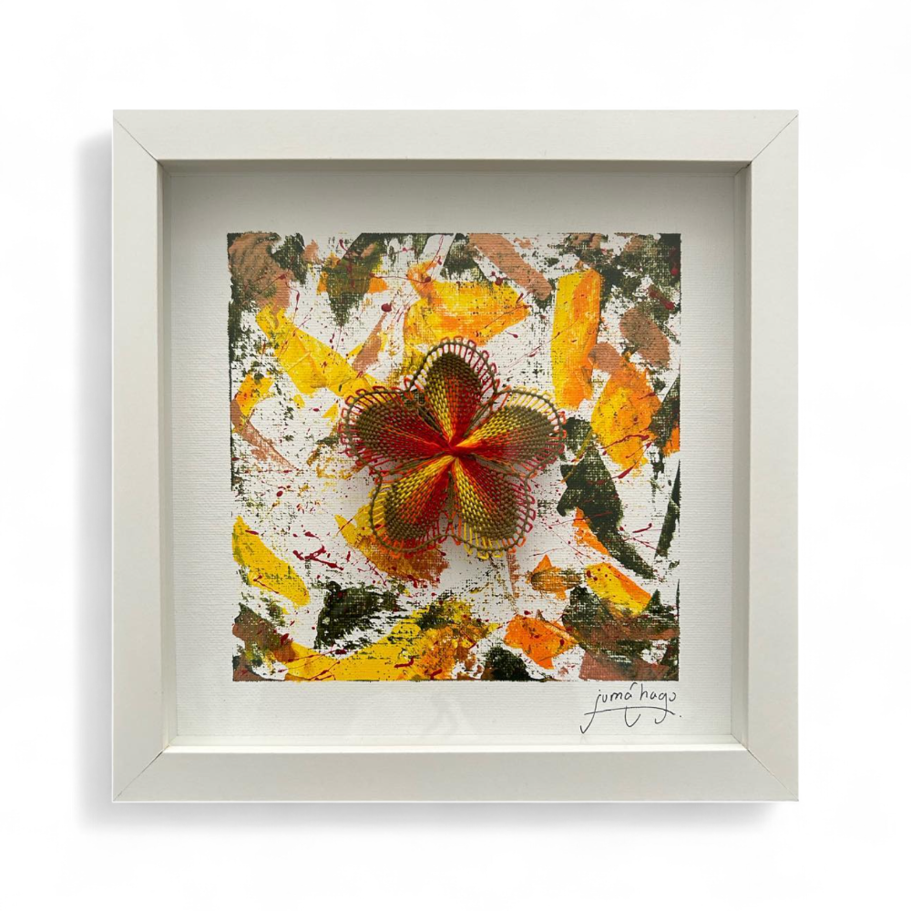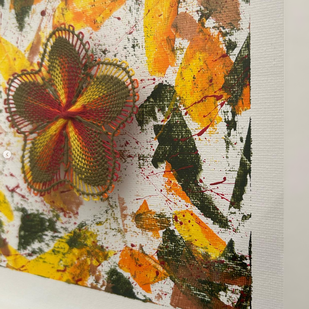 "GUARANI BLOOM" | Nanduti technique (traditional Paraguayan embroidered lace) and paint.