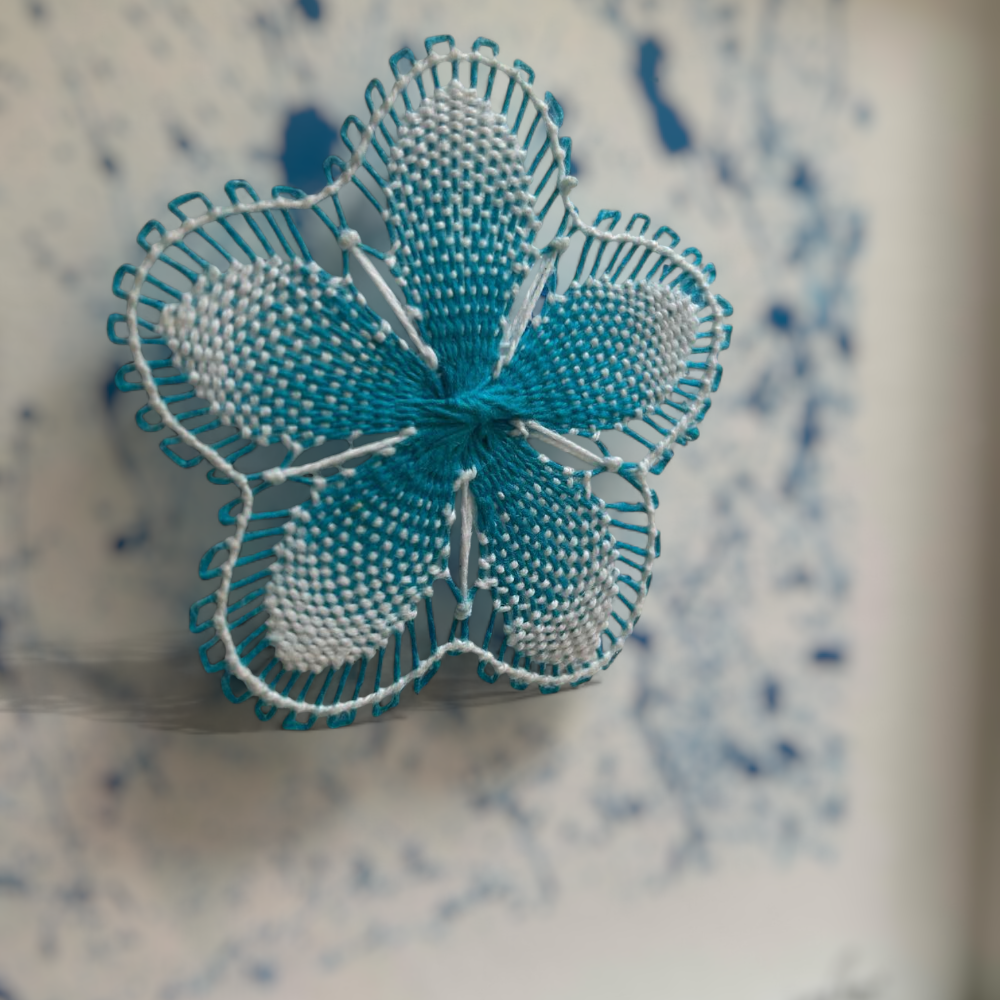 "GUARANI BLOOM" | Nanduti technique (traditional Paraguayan embroidered lace) and paint.