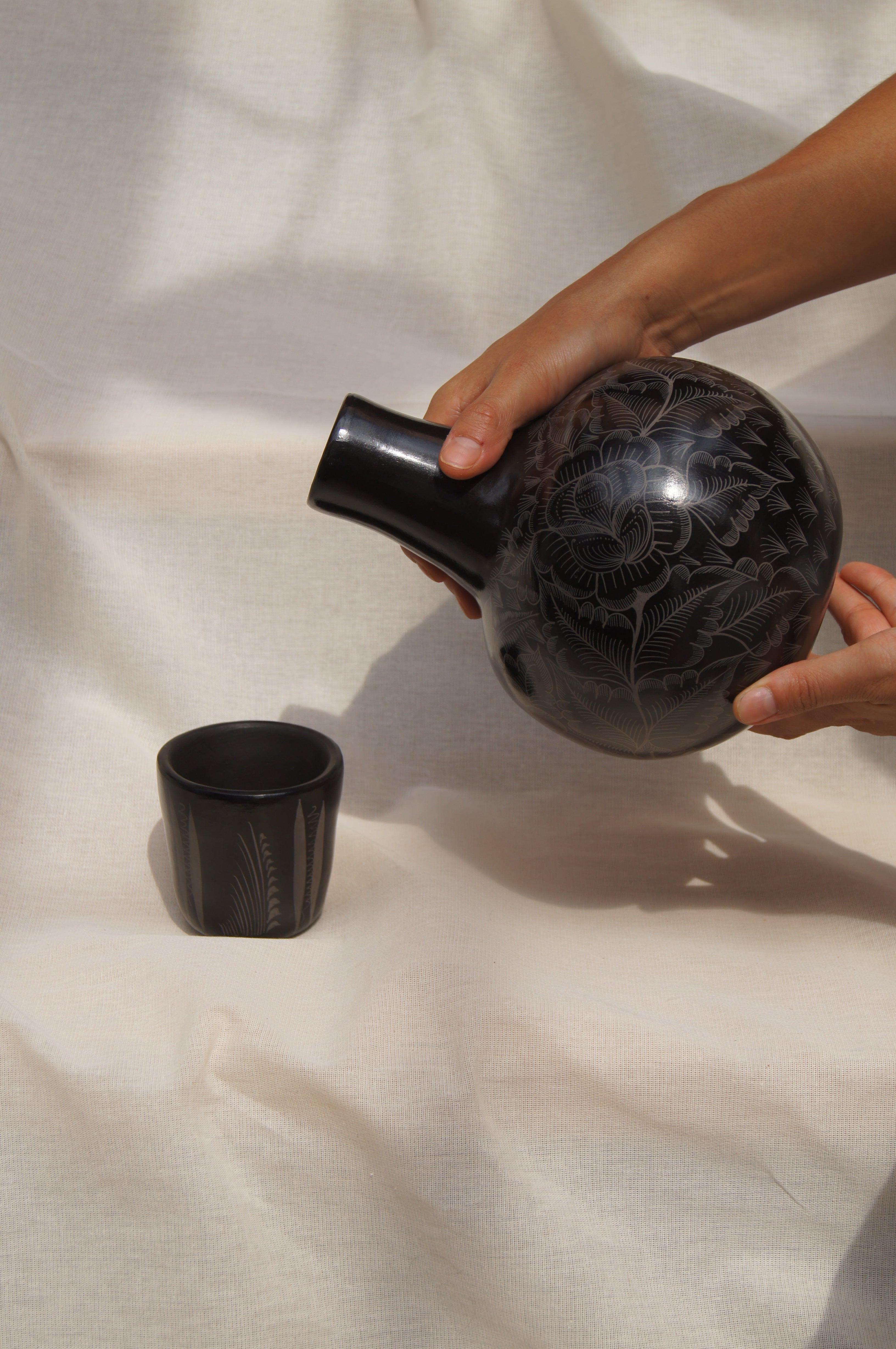 “Noche” decanter with cup, Hand painted Clay, Taller Maya, 2024 - Lot 793A