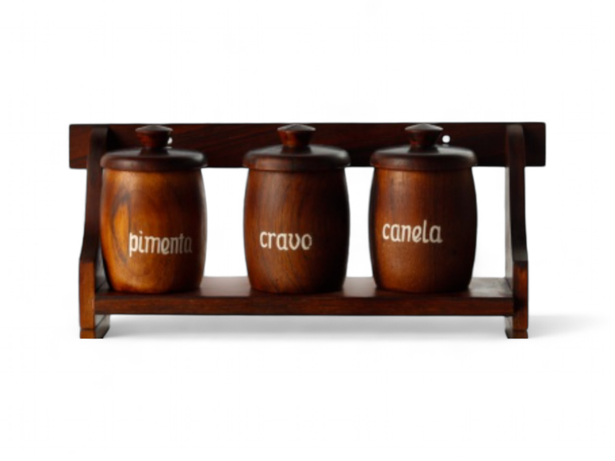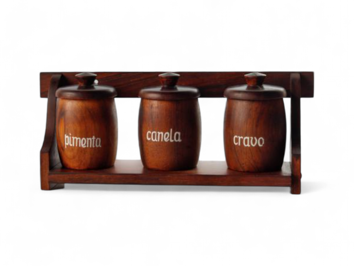 Spice Rack with 3 Containers in Hardwood, Casa Finland, 1960s - Lot 696