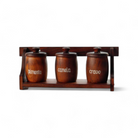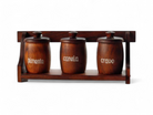 Casa Finland - Brazil, circa 1960 - A delightful collection of spice racks crafted from solid rosewood. This set includes a wall-mounted bracket and three spice containers, all retaining the original Casa Finland label.
