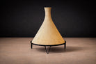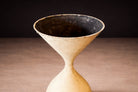The planter features Guhl’s signature hourglass silhouette, creating a striking presence whether used indoors or outdoors. Its original patina and textured surface highlight the natural aging of the material, adding character and authenticity. The piece rests on a metal support base, ensuring stability and elevating the planter to showcase plants beautifully.