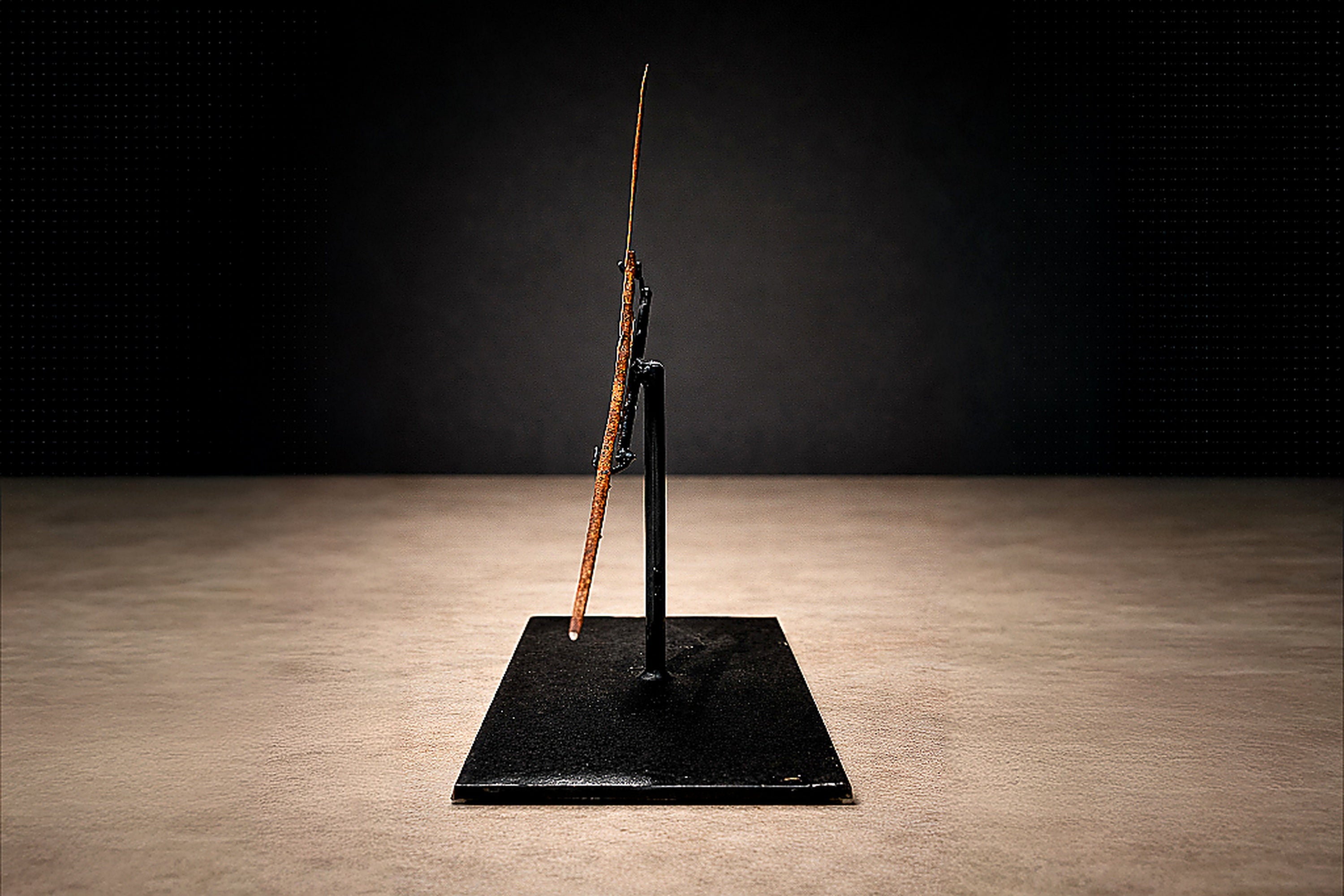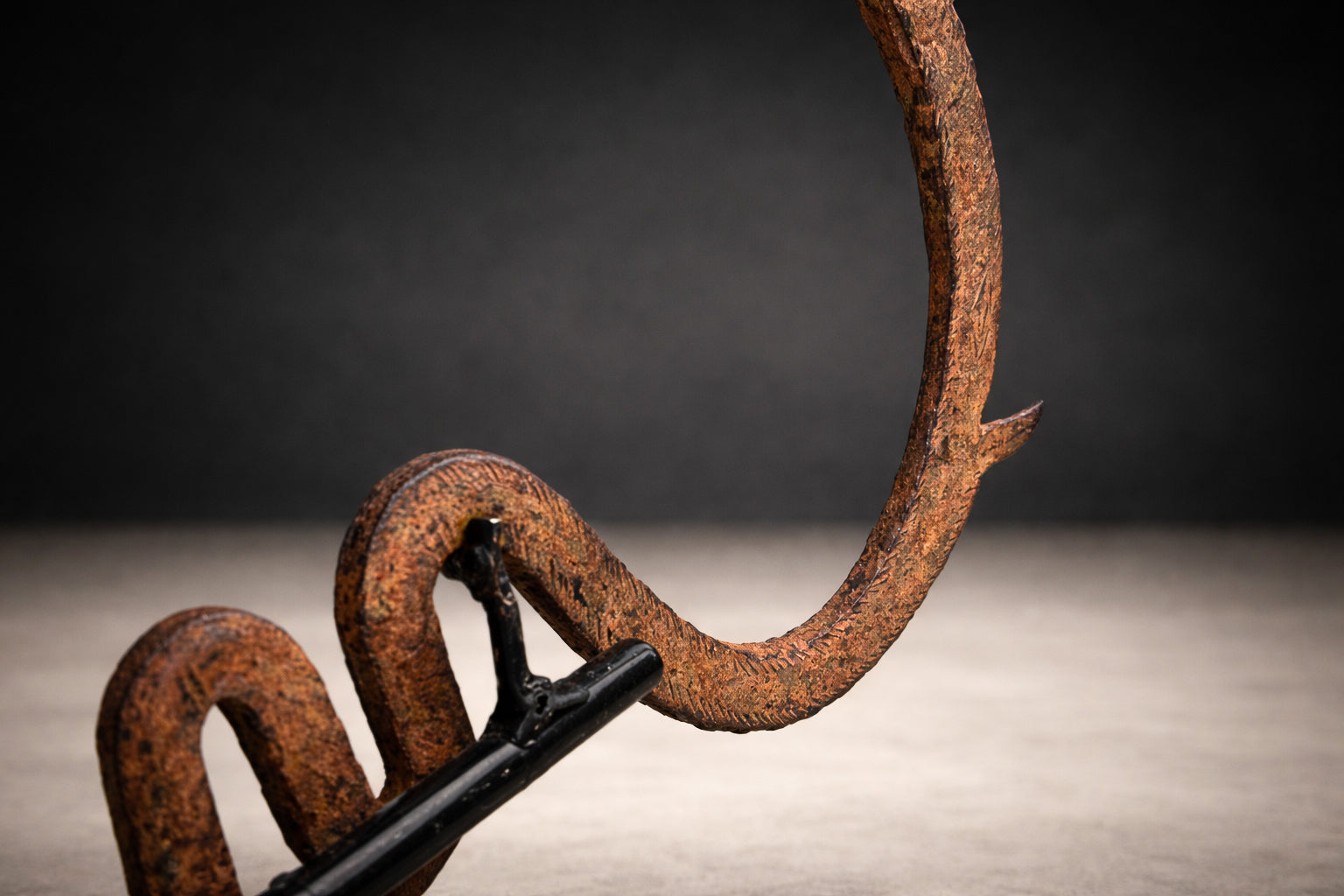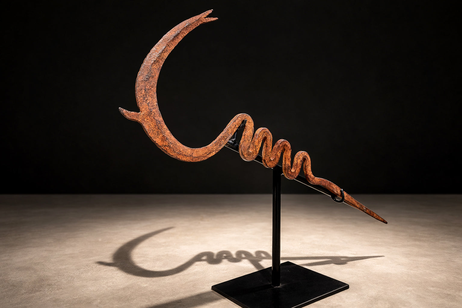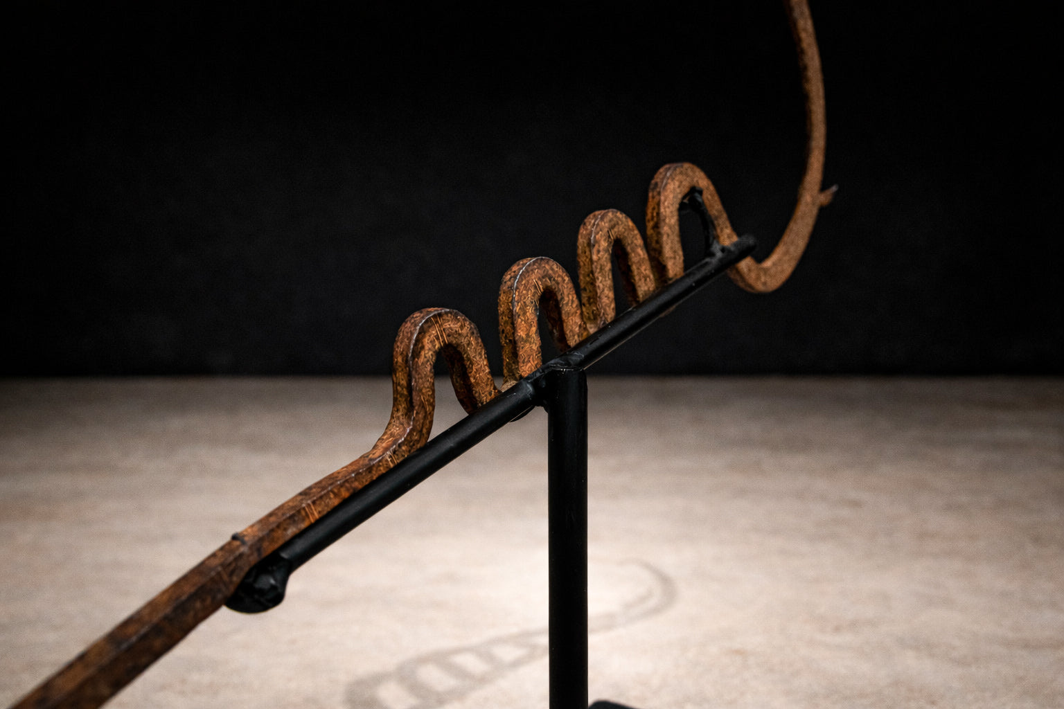 Mounted on a custom black steel base for presentation, the currency reads today as a striking abstract sculpture—minimal, rhythmic, and deeply expressive. Its asymmetry and coiled geometry anticipate modernist abstraction, yet remain grounded in cultural function and ritual economy.