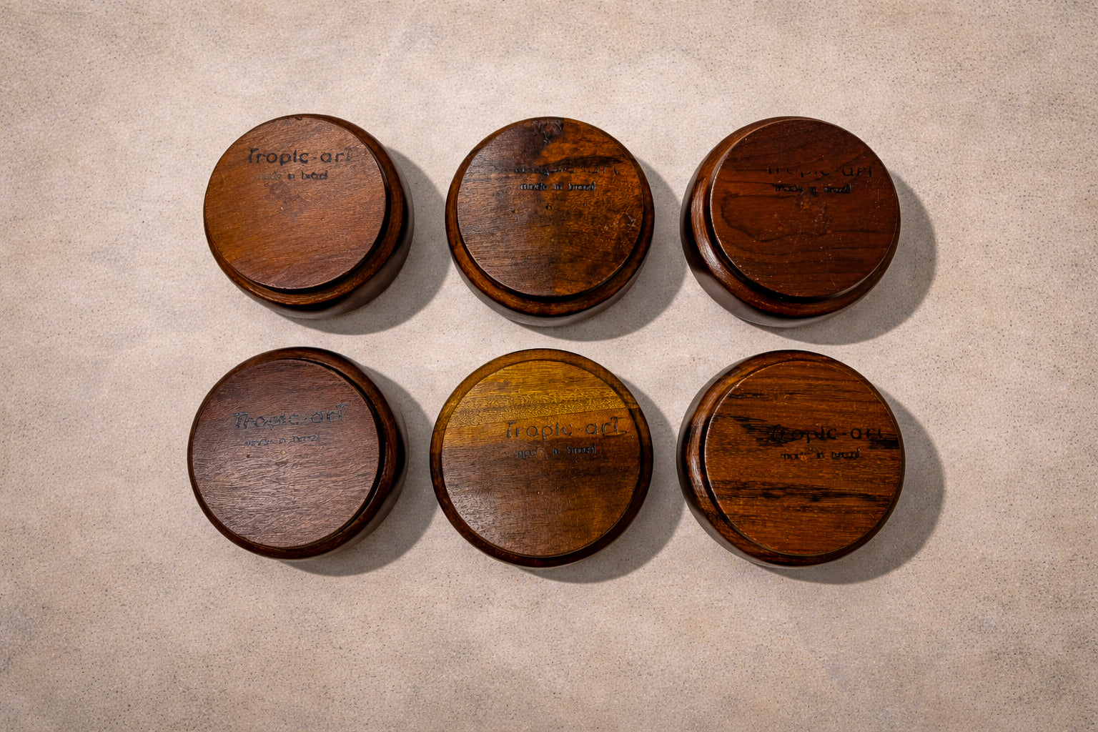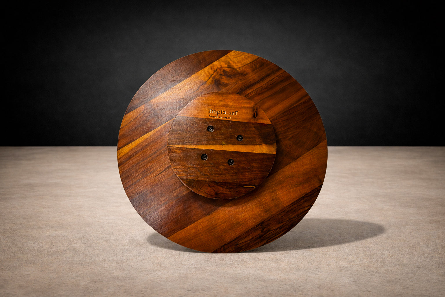 Produced by Tropic Art, Brazil, circa 1970s, this rosewood Lazy Susan exemplifies the intersection of utility and material refinement characteristic of Brazilian mid-century design. Tropic Art’s production during this period reflects a commitment to functional clarity, where everyday objects were elevated through thoughtful construction and an emphasis on natural materials.