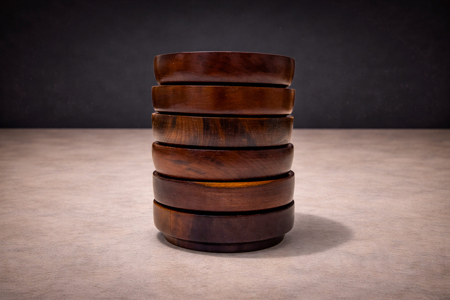 Material integrity is central to the design. The rosewood displays warm tonal variation and expressive grain, allowing the character of the wood to define the object rather than surface embellishment. The finish is smooth and even, emphasizing craftsmanship and the inherent beauty of the material. Construction is straightforward and robust, underscoring durability alongside elegance.