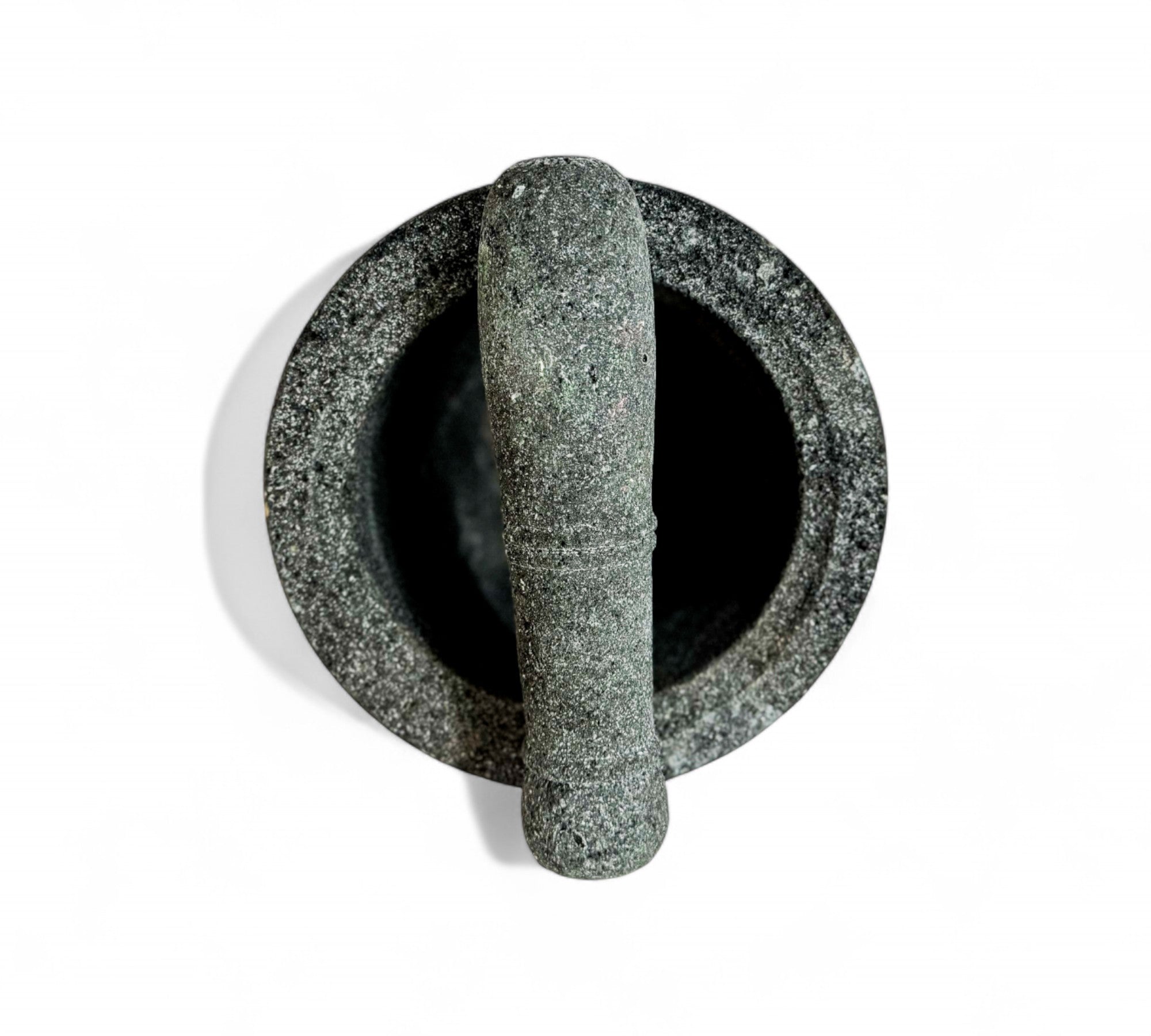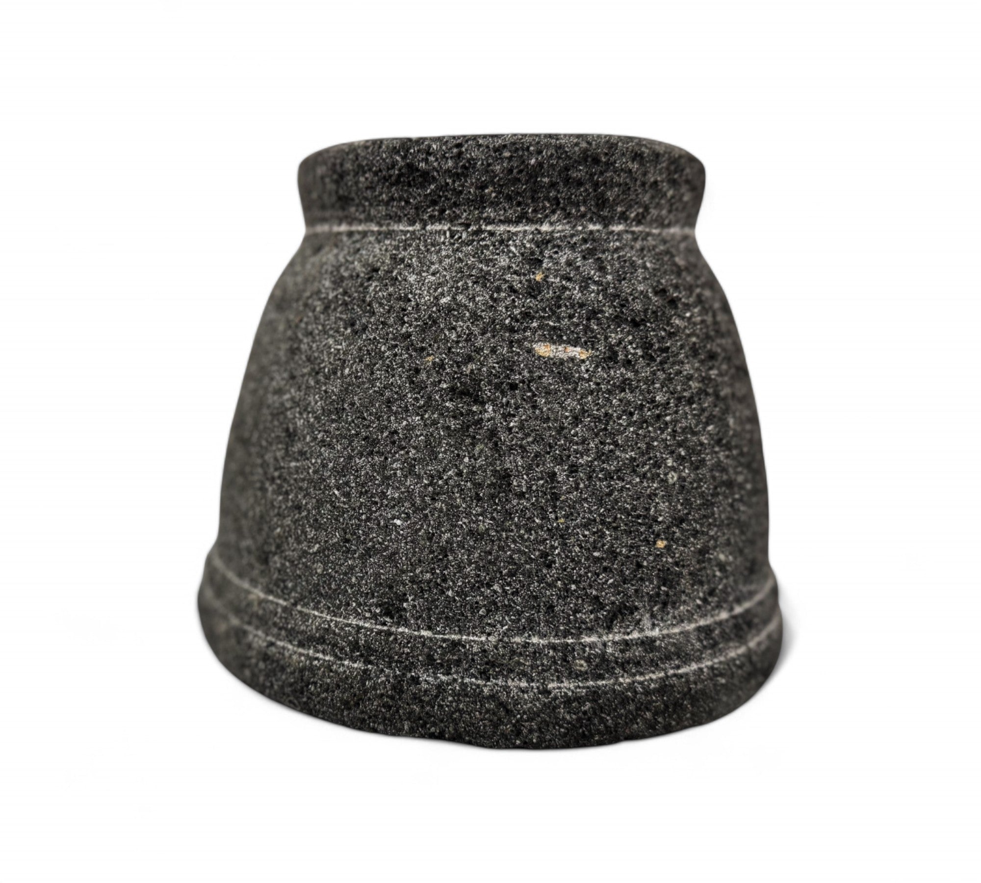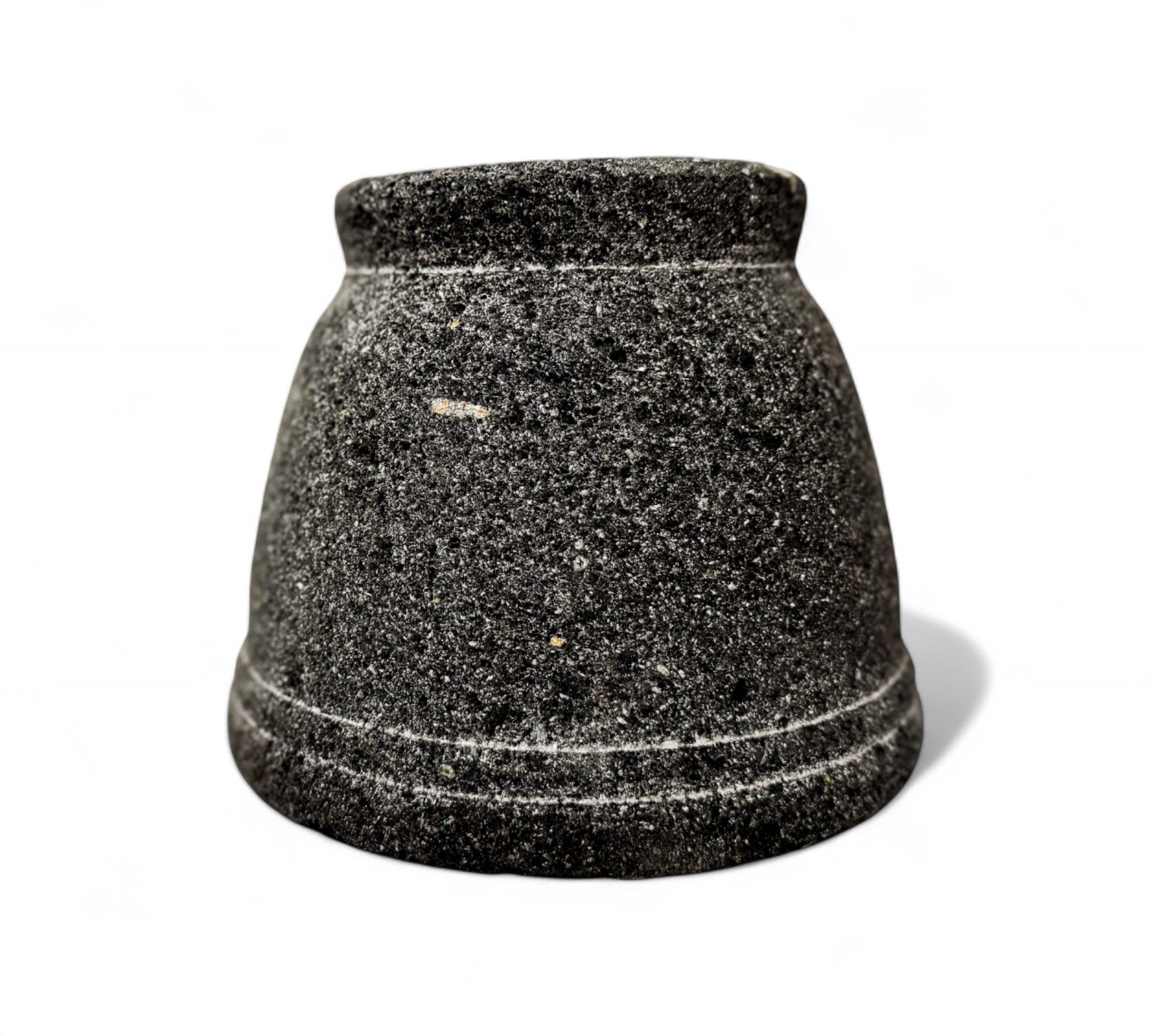 This image shows a beautifully hand-carved molcajete, a traditional Mexican mortar and pestle, designed in 2016 by Taller Maya, a collective that works with Mayan artisans in the Yucatán Peninsula. Crafted from volcanic stone, this molcajete is both a functional kitchen tool and a cultural artifact, reflecting centuries-old traditions of grinding spices, herbs, and seeds. The coarse surface of the volcanic rock is ideal for creating richly textured salsas and pastes. The piece represents a commitment to cultural preservation, sustainable practices, and artisan empowerment. Its clean, elegant form is rooted in ancient utility, yet timeless enough to be used in modern kitchens around the world.