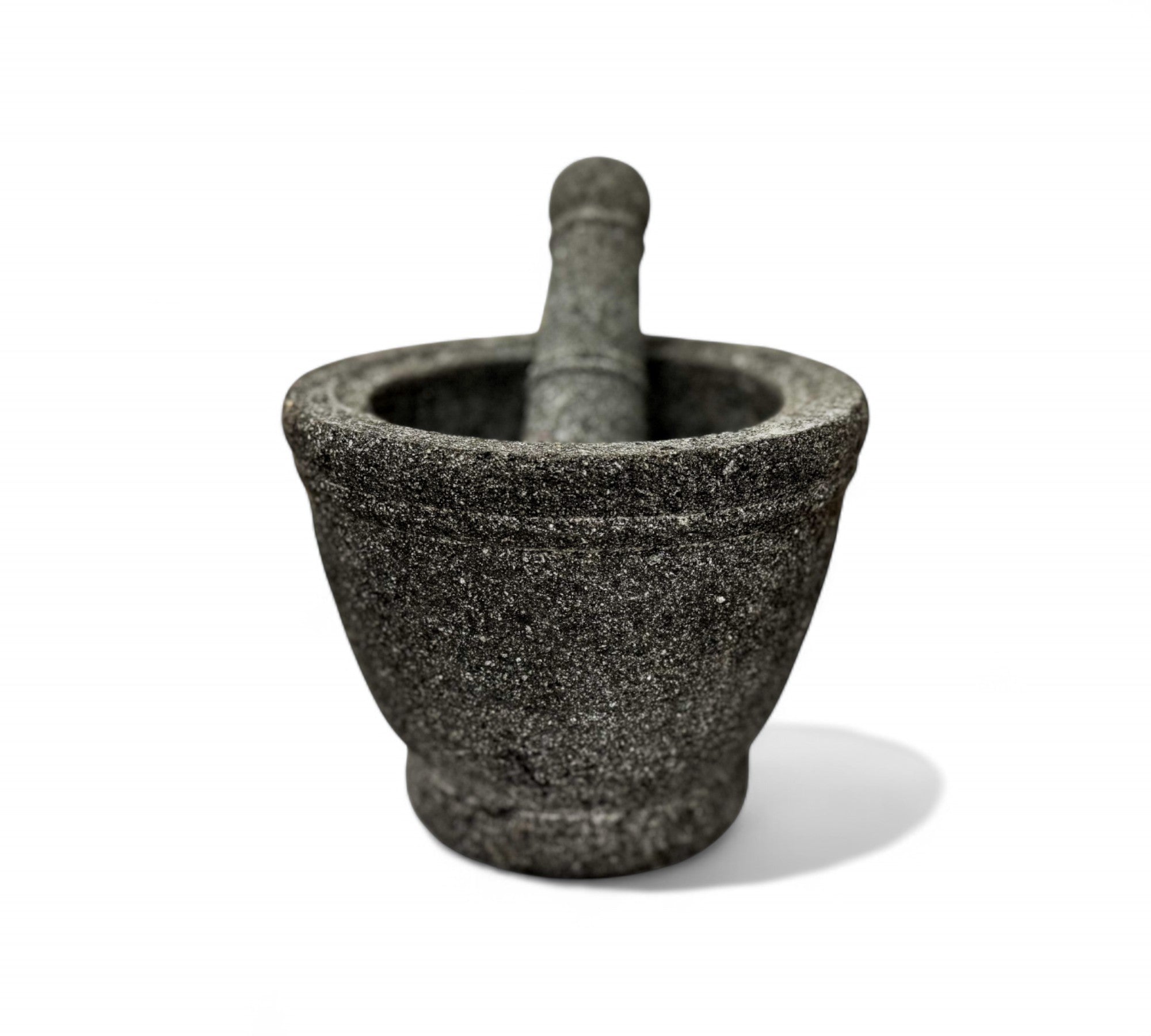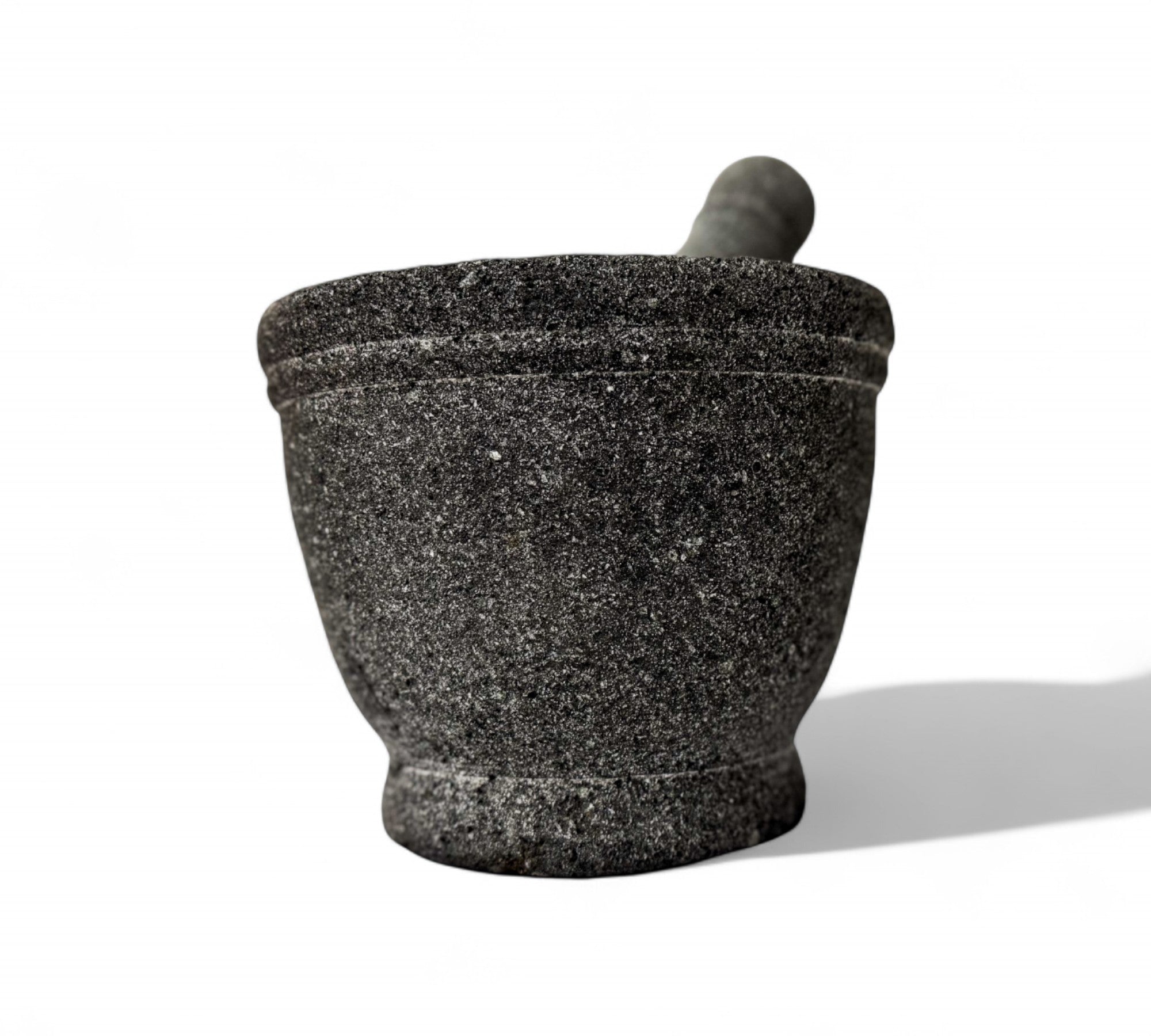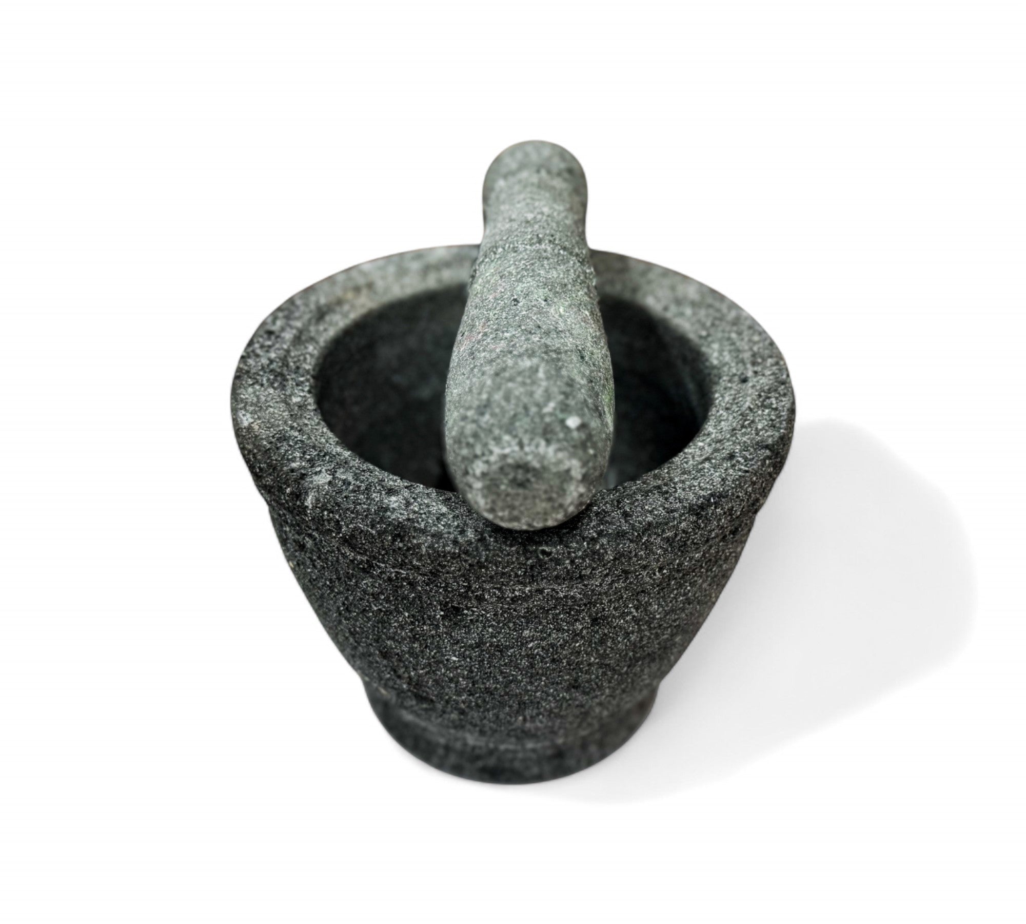 This image shows a beautifully hand-carved molcajete, a traditional Mexican mortar and pestle, designed in 2016 by Taller Maya, a collective that works with Mayan artisans in the Yucatán Peninsula. Crafted from volcanic stone, this molcajete is both a functional kitchen tool and a cultural artifact, reflecting centuries-old traditions of grinding spices, herbs, and seeds. The coarse surface of the volcanic rock is ideal for creating richly textured salsas and pastes. The piece represents a commitment to cultural preservation, sustainable practices, and artisan empowerment. Its clean, elegant form is rooted in ancient utility, yet timeless enough to be used in modern kitchens around the world.