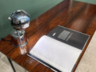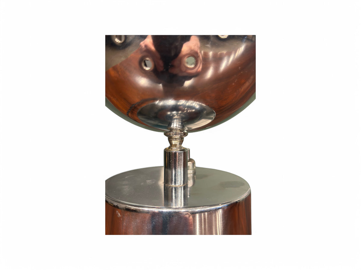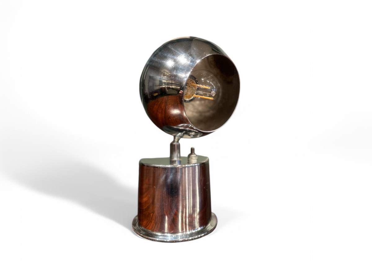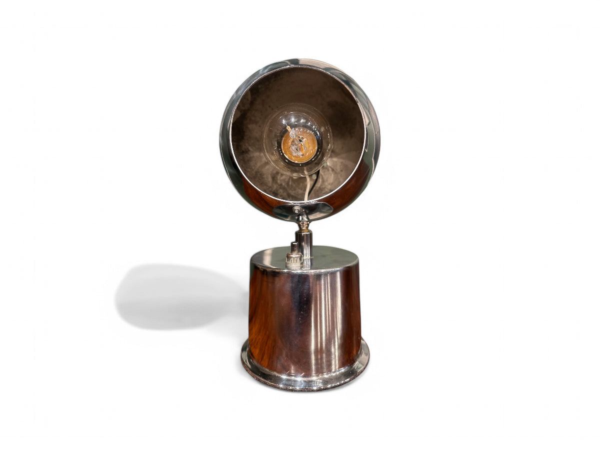 This vibrant 1960s table lamp, designed by Dominici in Brazil, features a sleek plated chrome finish and has been rewired for safety and functionality. Its adjustable head swivels a full 360 degrees, offering convenience and versatility in lighting. This striking accessory is sure to be a standout piece on any desk, making it the perfect choice for anyone in search of a charming accent!