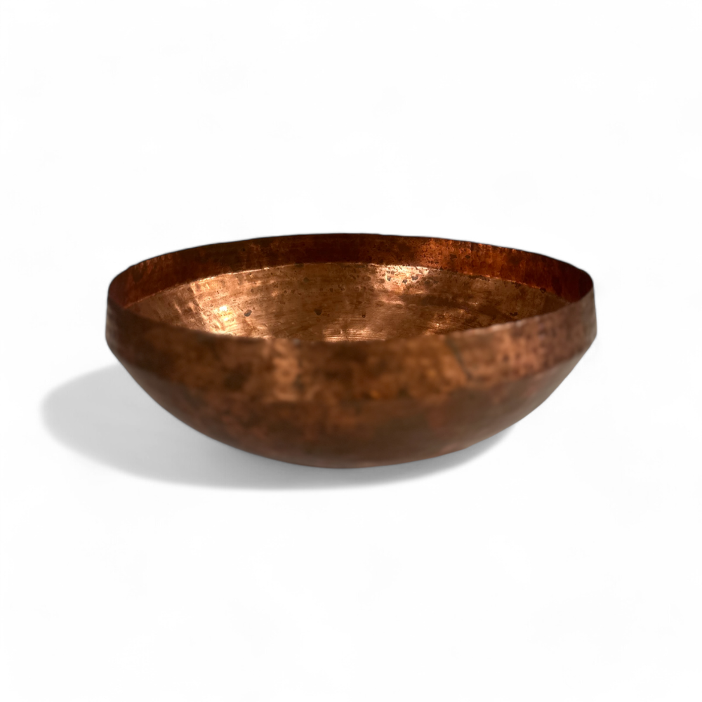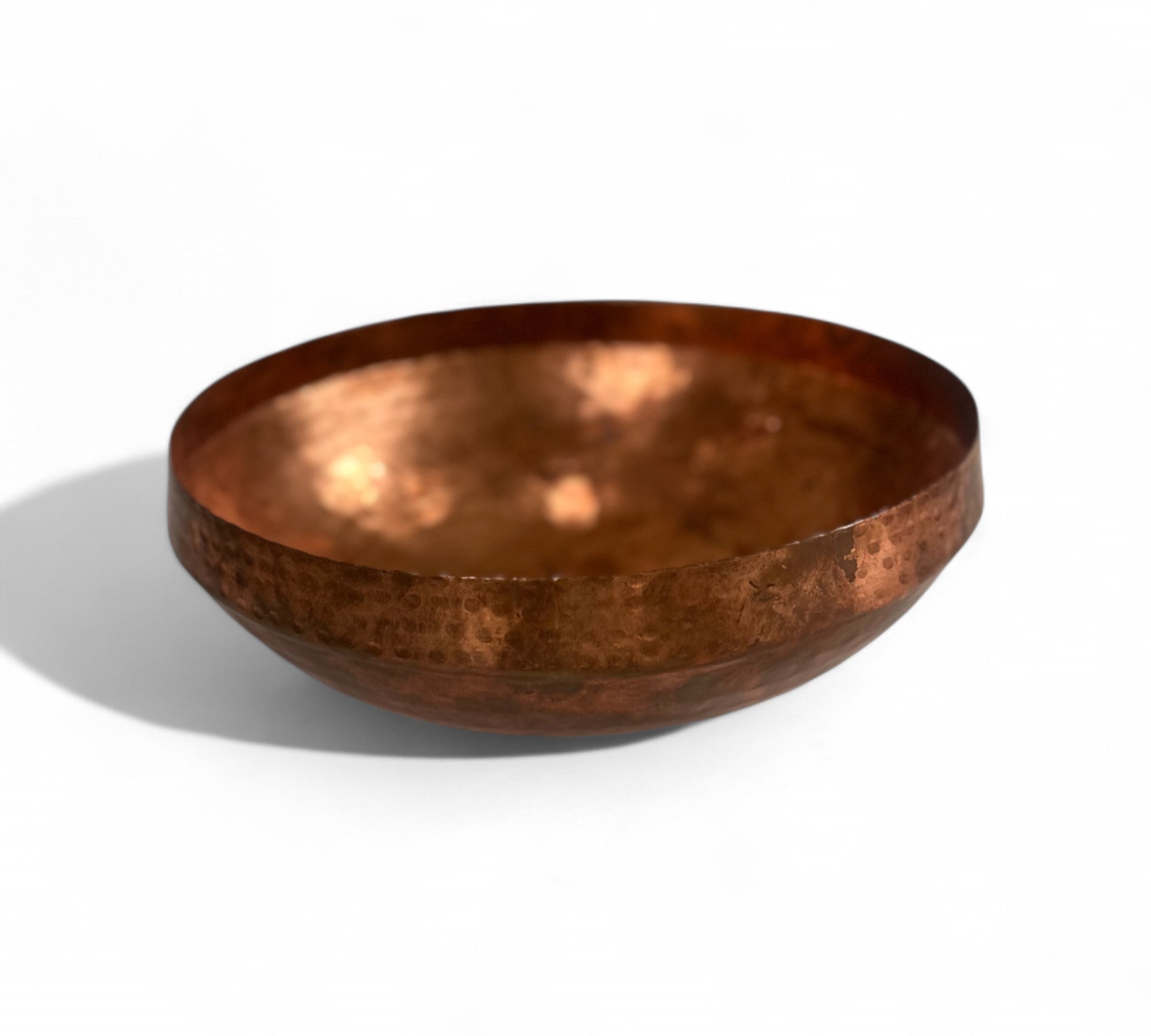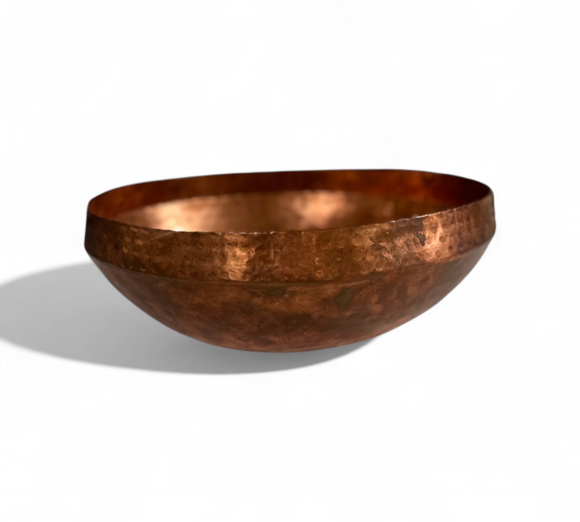 The Large Copper Sculpted Bowl, handcrafted by the artisans in Ensamble Artesano, is an exquisite piece made entirely of copper. Its unique, hammered texture make it a striking addition to any home, ideal for serving or as a centerpiece. This bowl's craftsmanship highlights the meticulous work of women artisans from Mexico, who use traditional techniques to create each piece.