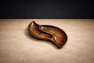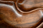 The form is carved from a single block, revealing the density and structural integrity of the wood. Gently rising edges and a subtly divided interior field introduce both visual rhythm and functional clarity. The interplay of curves establishes a natural flow across the surface, while maintaining structural coherence and balance.