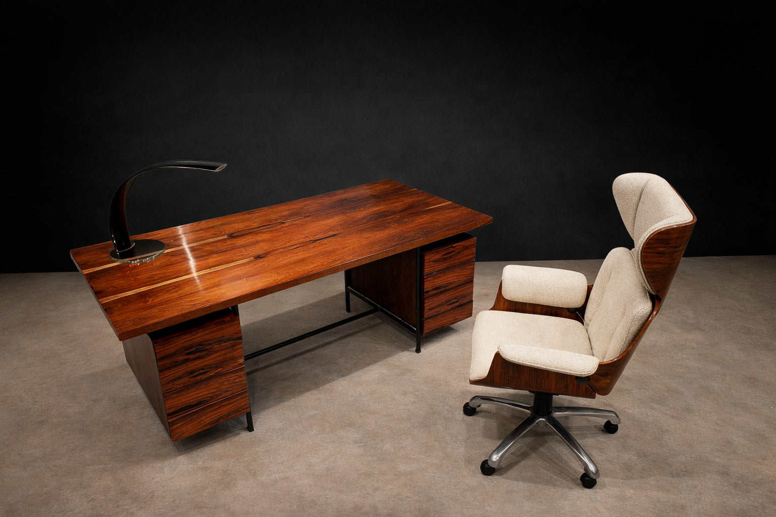 Brazilian Modern Hotel Nacional Desk and Armchair Set by Jorge Zalszupin for L’Atelier, Rio de Janeiro, 1970 - Lot 24-608