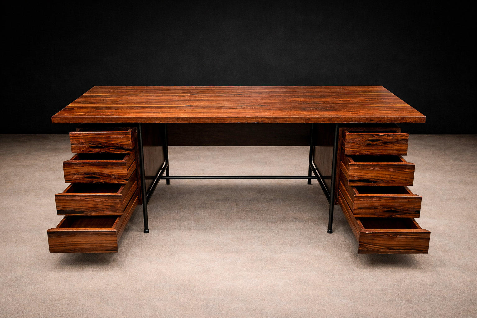 Brazilian Modern Six-Drawer Rosewood & Iron Desk by Geraldo de Barros, Brazil, 1950s - Lot 460A