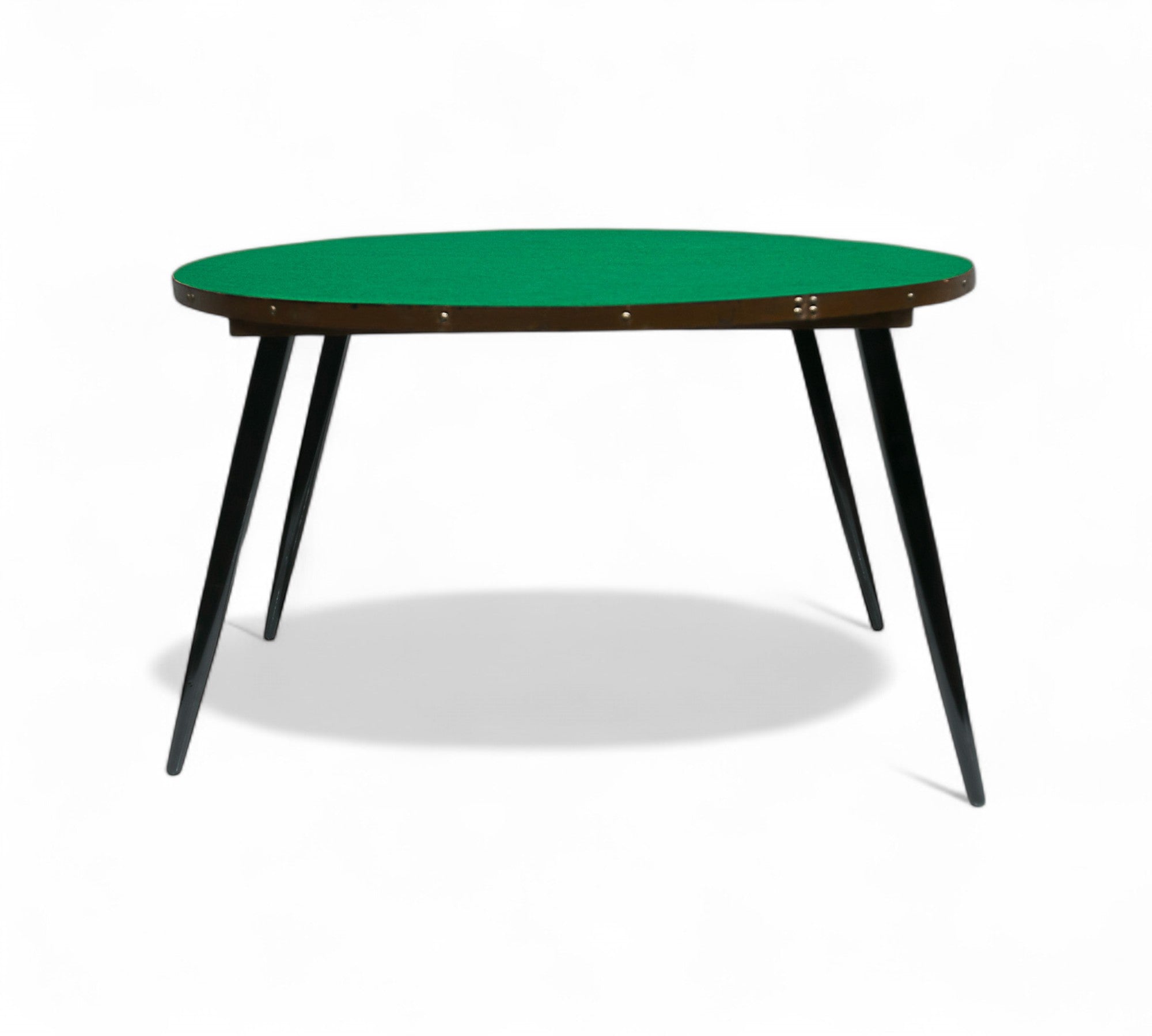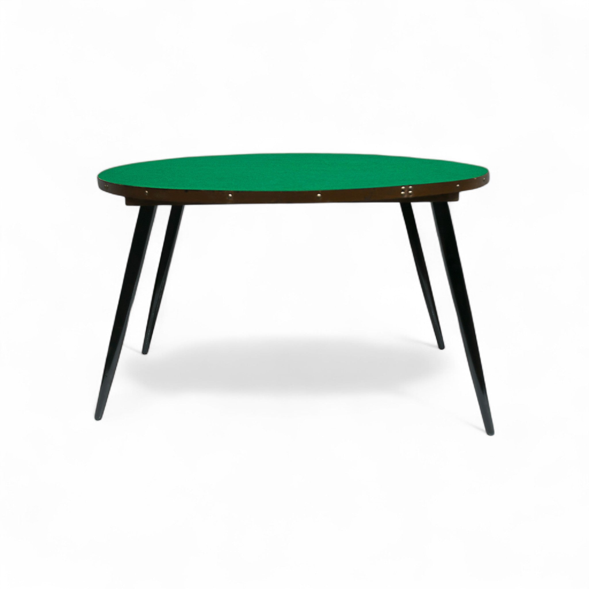 The table frame is crafted from a luxurious black and brown hardwood. Its tabletop is adorned with green felt, perfectly complementing the wooden frame. The legs of the table are slender and angled, typical of Brazilian modern furniture design. This table is ideal for enjoying card games or board games with friends and family.