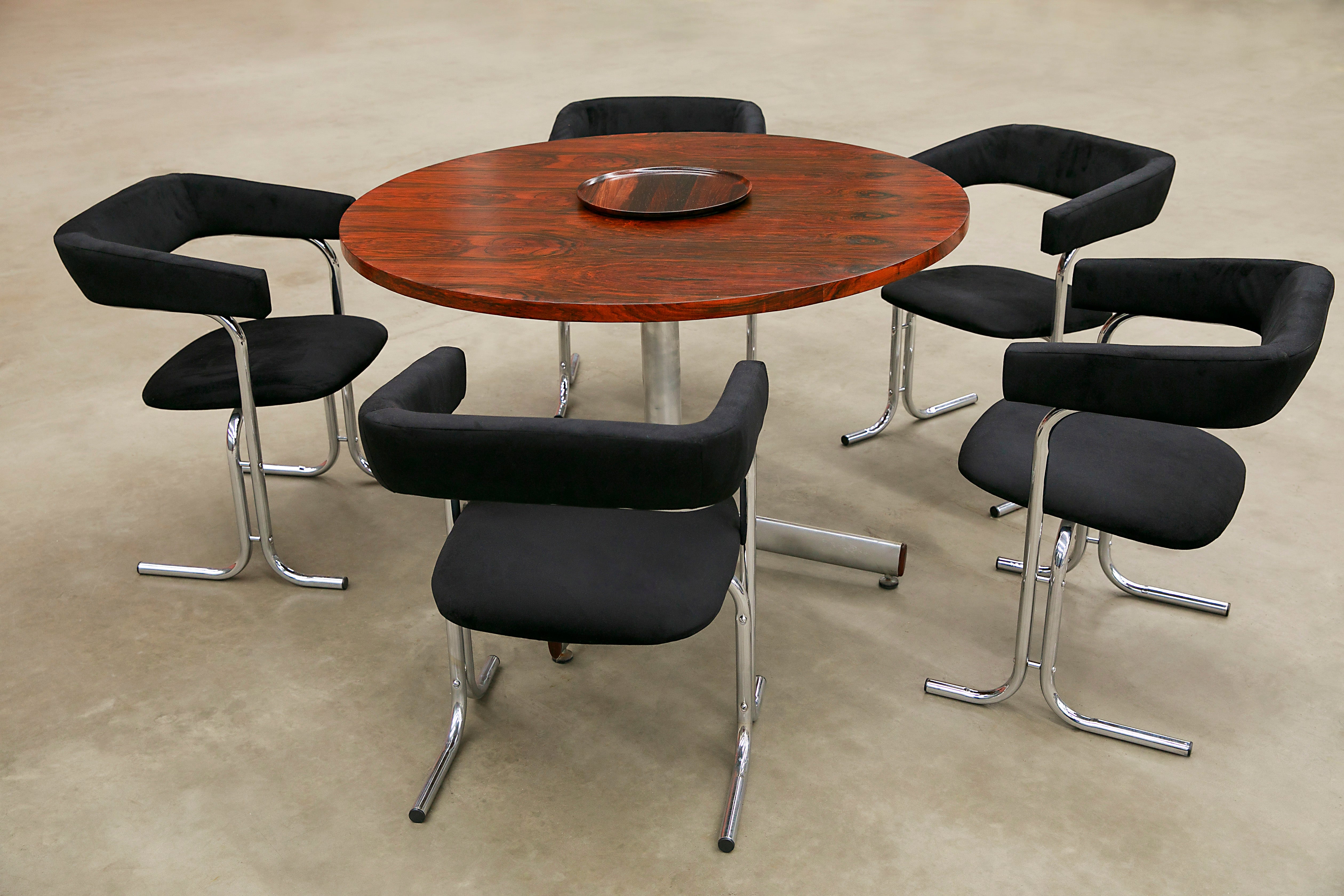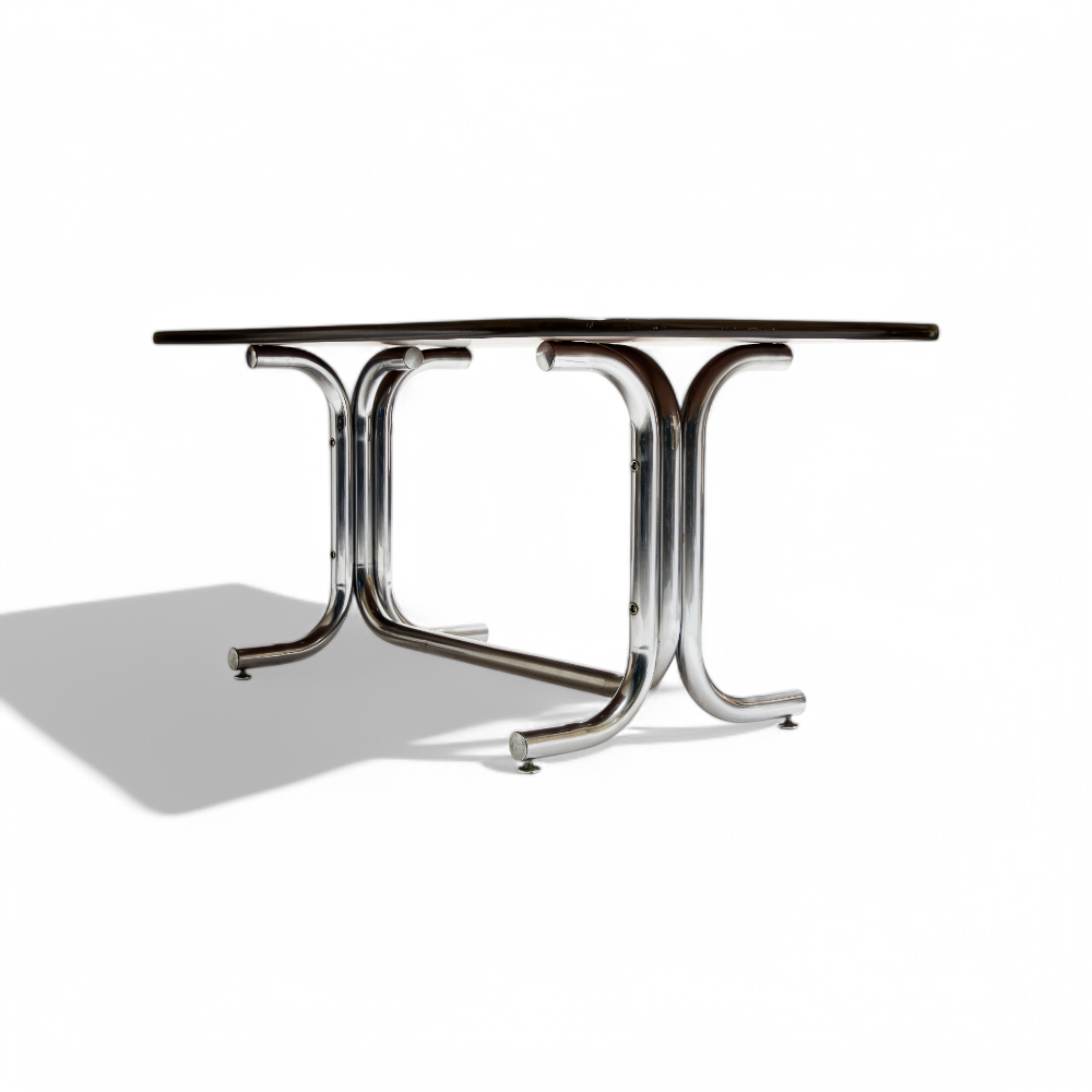 Dining Table in Chrome & Wood, Geraldo Barros, 1970s - Lot 7