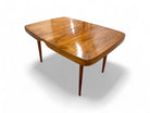 The table has been refinished and besides the marks of age, the piece is in excellent condition. Traces of distributor seal are under the table. This beautiful table is featured in our gallery with a 10 chair set in Caviuna & Black leather from Giuseppe Scapinelli and looks spectacular! Equally as practical as beautiful, these table will look awesome with modern or mid-modern chairs but will also look terrific in a Contemporary, Minimalistic environment. The table fits six when is closed and eight to ten when is extended.