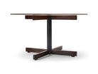 This round dining table consists of a granite top, an “X” shape base made with steel, and Brazilian rosewood, also known as jacaranda. The refinished rosewood has smooth yellow veins, and the granite has a purple tone with white veins, giving it an organic look. The table comfortably seats six people, and the manufacturing seal is underneath the granite top. Besides some marks of age, the table is in excellent condition.