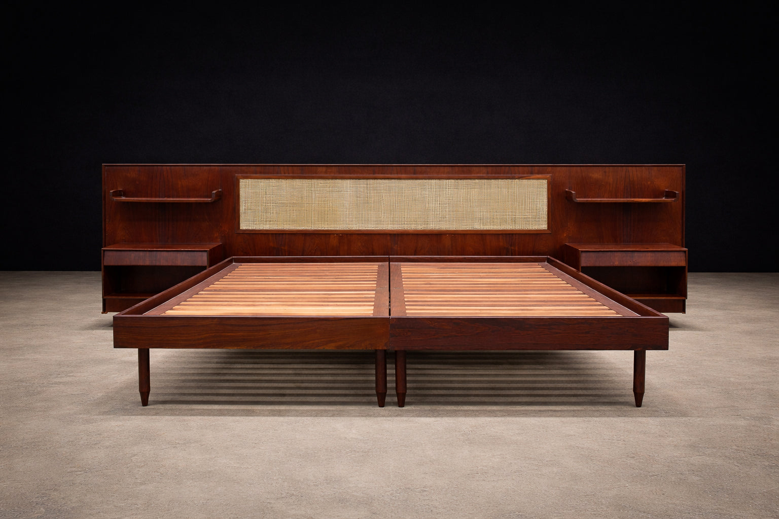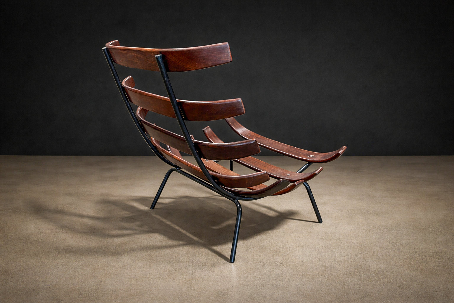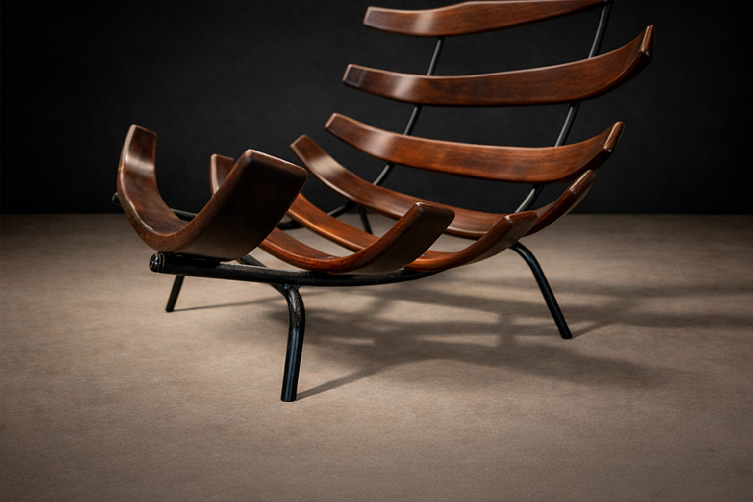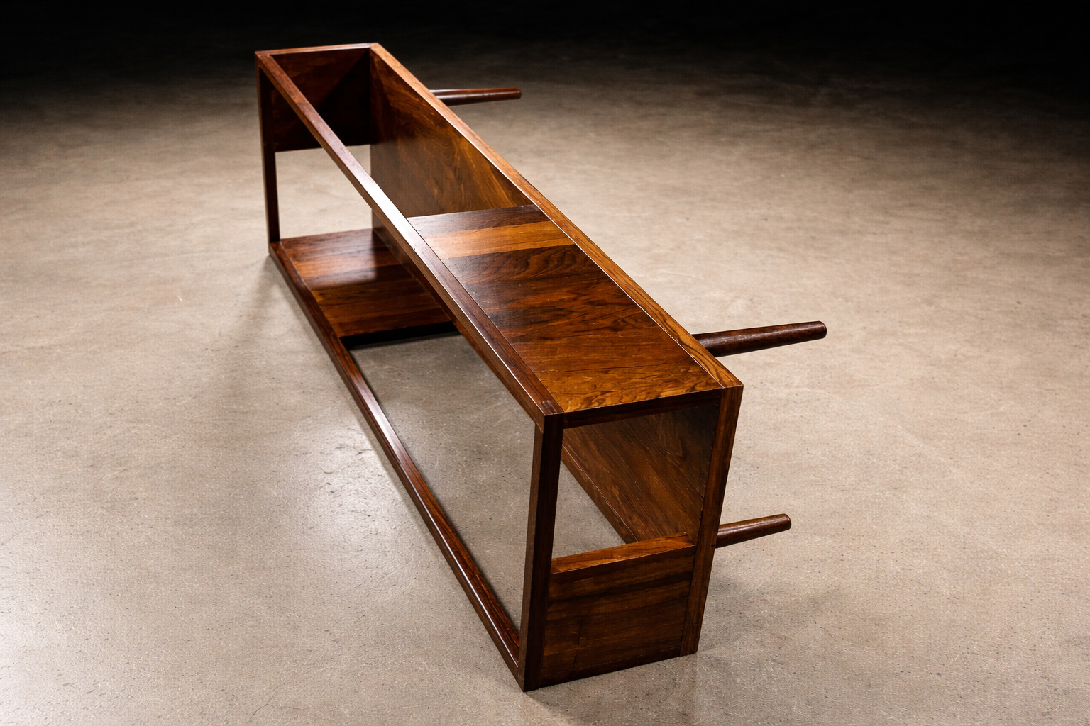 Working primarily in rosewood, jacarandá, leather, and iron, Hauner and Eisler combined precise craftsmanship with an experimental approach to form and proportion. Their furniture captured the optimism of postwar Brazil—modern, elegant, and adaptable to contemporary living.
