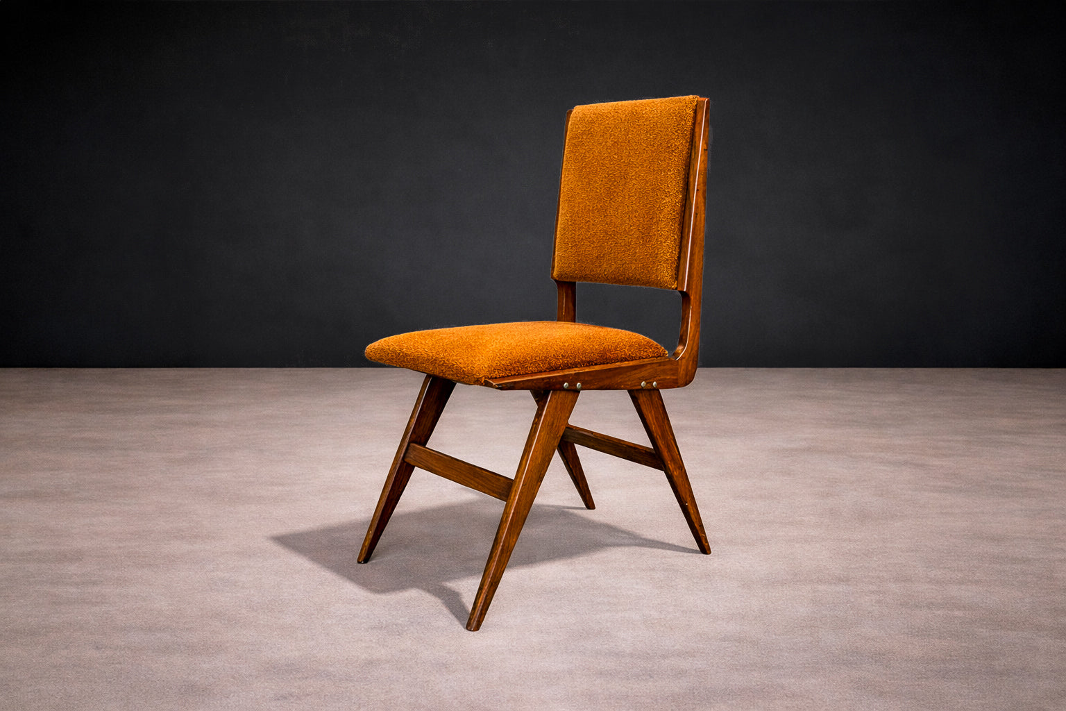 Attributed to Carlo Hauner and Martin Eisler for Forma, this set of six dining chairs reflects the disciplined clarity that defined Brazilian modernism in the postwar decades. Produced in Brazil in the 1950s, the suite distills the designers’ approach to structure and proportion: furniture conceived not as ornament, but as a lucid architectural proposition. Hauner and Eisler’s work for Forma played a central role in shaping a distinctly Brazilian interpretation of international modernism, where European rationalism met the warmth and expressive grain of native hardwoods.