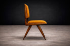 Conceived for dining or institutional interiors, the chairs integrate function with their structural logic. The upright back and measured seat depth provide supportive seating suited to extended table use, reflecting a modernist understanding of comfort grounded in proportion and posture rather than softness.