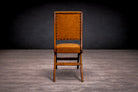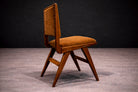 Crafted in Brazilian rosewood (jacaranda), the frames reveal the species’ characteristic depth of tone and pronounced grain movement. The wood has been professionally refinished to a warm satin-matte surface that foregrounds the material’s natural variation and density. Seats are upholstered in saddle mohair, whose textured surface provides a subdued tonal counterpoint to the darker wood structure. Construction is straightforward and honest, with joinery and grain continuity functioning as the primary expressive elements rather than applied ornament.