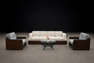 Recently refinished, the rosewood surfaces reveal a smooth, well-preserved grain with a satin finish. The upholstery is clean and well-maintained. Minor age-related marks are consistent with vintage use and do not detract from the overall excellent condition of the set.