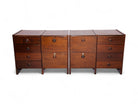Experience the elegance of these extraordinary Brazilian modern filing cabinets by Geraldo de Barros for Hobjeto. This remarkable pair of mid-century marvels is a true rarity, combining both style and functionality seamlessly. Crafted with jacaranda wood, also known as Brazilian rosewood, along with sturdy steel elements, each cabinet showcases a harmonious blend of materials. With two filing drawers and four regular drawers, these cabinets offer ample storage space for all your organizational needs. Keys are also included for added convenience. Embracing a clean and minimalist design, they effortlessly adapt to any type of environment. Meticulously refinished, these cabinets beautifully display the wood's inherent characteristics, while still retaining their excellent condition despite the natural marks of age.