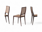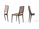The chairs have been reinforced and refinished, showcasing their vibrant natural veins. The caning is brand new, meticulously following the original design from the 1950s.