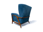 This exceptional set of armchairs is crafted from Caviuna hardwood and reupholstered in super soft blue boucle. The wooden rods elegantly hold the seating structure, evoking a sense of living organism, typically of Scapinelli’s production in the 50s.