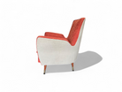 This armchair was designed by Giuseppe Scapinelli in the 1950s. This design was very popular amongst the urban elites of Sao Paulo and Rio de Janeiro to furnish their homes as can be seen in the vintage publications/ The structure of these chairs is made in a Brazilian noble wood tapered legs and fabric.