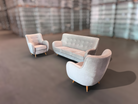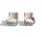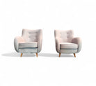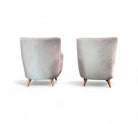 Spectacular pair of armchairs designed by Giuseppe Scapinelli in Brazil in the 1950’s. The set features a hardwood structure (completely reinforced), four delicate legs and a new light gray velvet upholstery. Equally as beautiful is comfortable and the matching sofa is lot 525 which can be purchased separately.