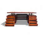 This stunning desk is crafted from solid Brazilian Rosewood and boasts eight spacious drawers, four sturdy legs, and an expansive top made of both rosewood and rosewood veneer. The top is securely attached to the desk's frame by four supportive arms, creating additional storage space underneath. The wood has been expertly refinished, and the desk remains in excellent condition. Ava exemplifies the exceptional furniture craftsmanship of Brazil from the 1960s, ready to be appreciated anew.
