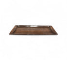 Handcrafted from hard rosewood (also known as Jacaranda), this tray features clean lines with elegant curves and two carved handles on each side. The rosewood has two rich tones with stunning natural wood grain on both sides. Pieces like this, with a minimalist aesthetic, are iconic from Brazil in the sixties, and were catered not only for domestic, but for international markets as well. This tray will look awesome as a centerpiece on a table or sideboard. The wood has been refinished and besides minor marks of age, the piece is in excellent condition.