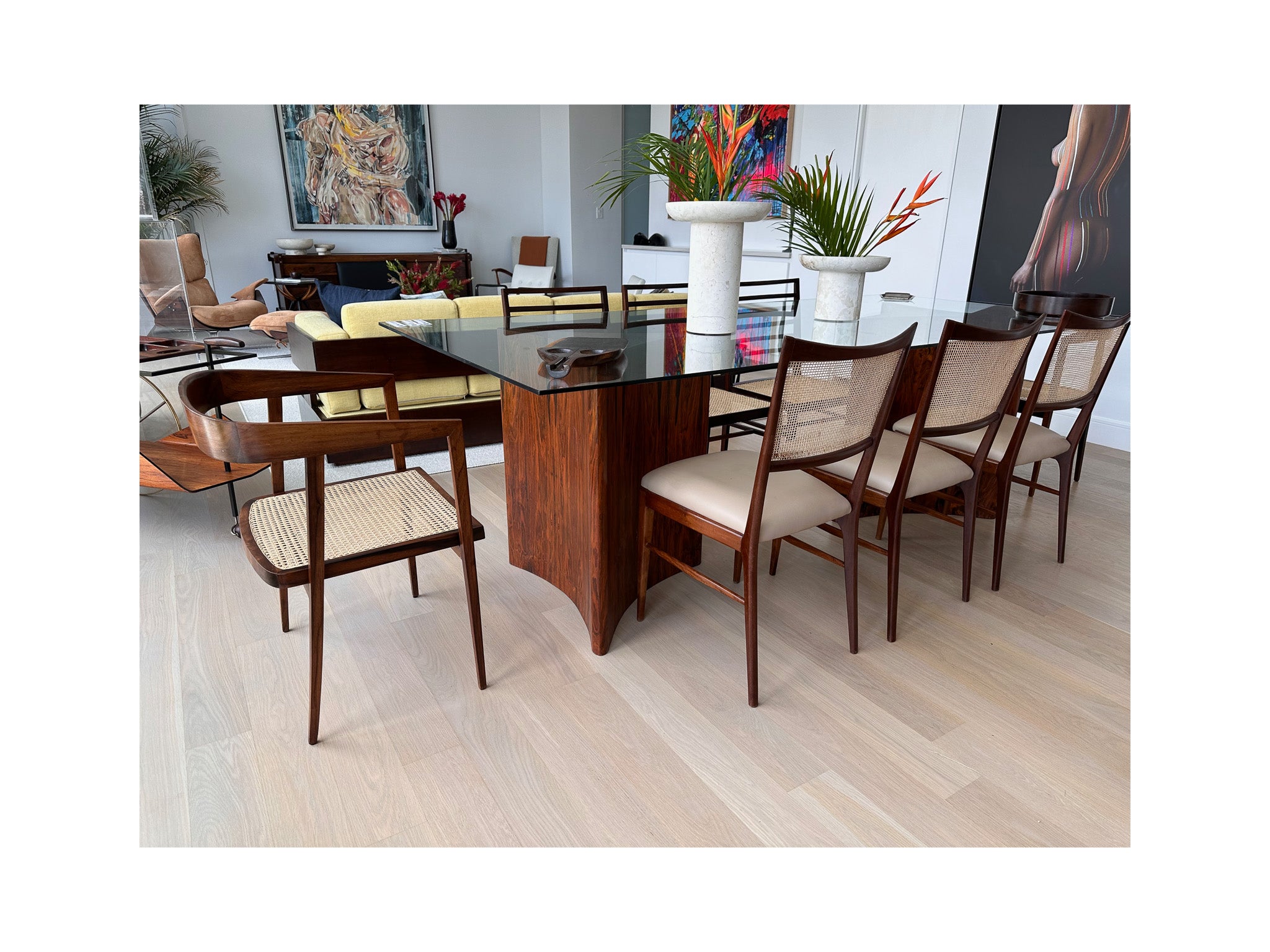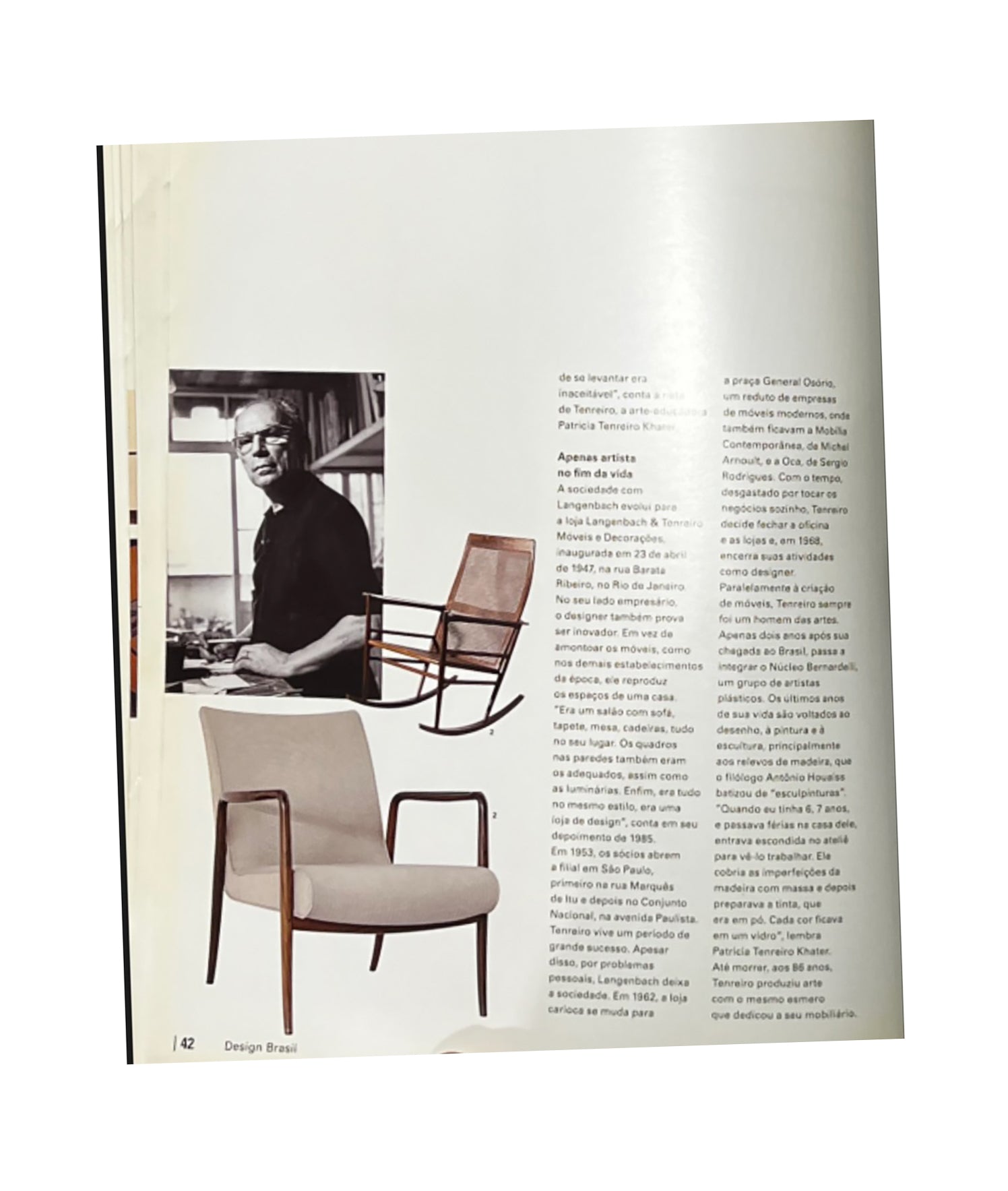 He often used clean, simple lines and geometric shapes in his furniture designs, which were a departure from the ornate and heavily decorated pieces that were popular at the time. His work was also notable for its functionality and practicality, as he believed that furniture should be both beautiful and useful. Tenreiro retired from furniture design in the late 1960s to focus on painting and sculpture, but his legacy in furniture design lives on. He died in Itapira, Brazil in 1992 at the age of 86.
