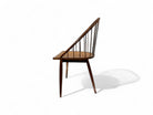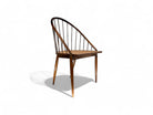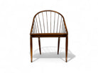 The beautiful “Curva” chair is made in rosewood and caning and was designed by Joaquim Tenreiro (1906-1992) in 1961/1962. This chair embodies a sophisticated blend of traditional principles and modern design. Its elegant lines, characterized by slender stick backs and delicately carved, pointed feet reminiscent of a ballerina, create a sense of floating within the space.