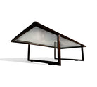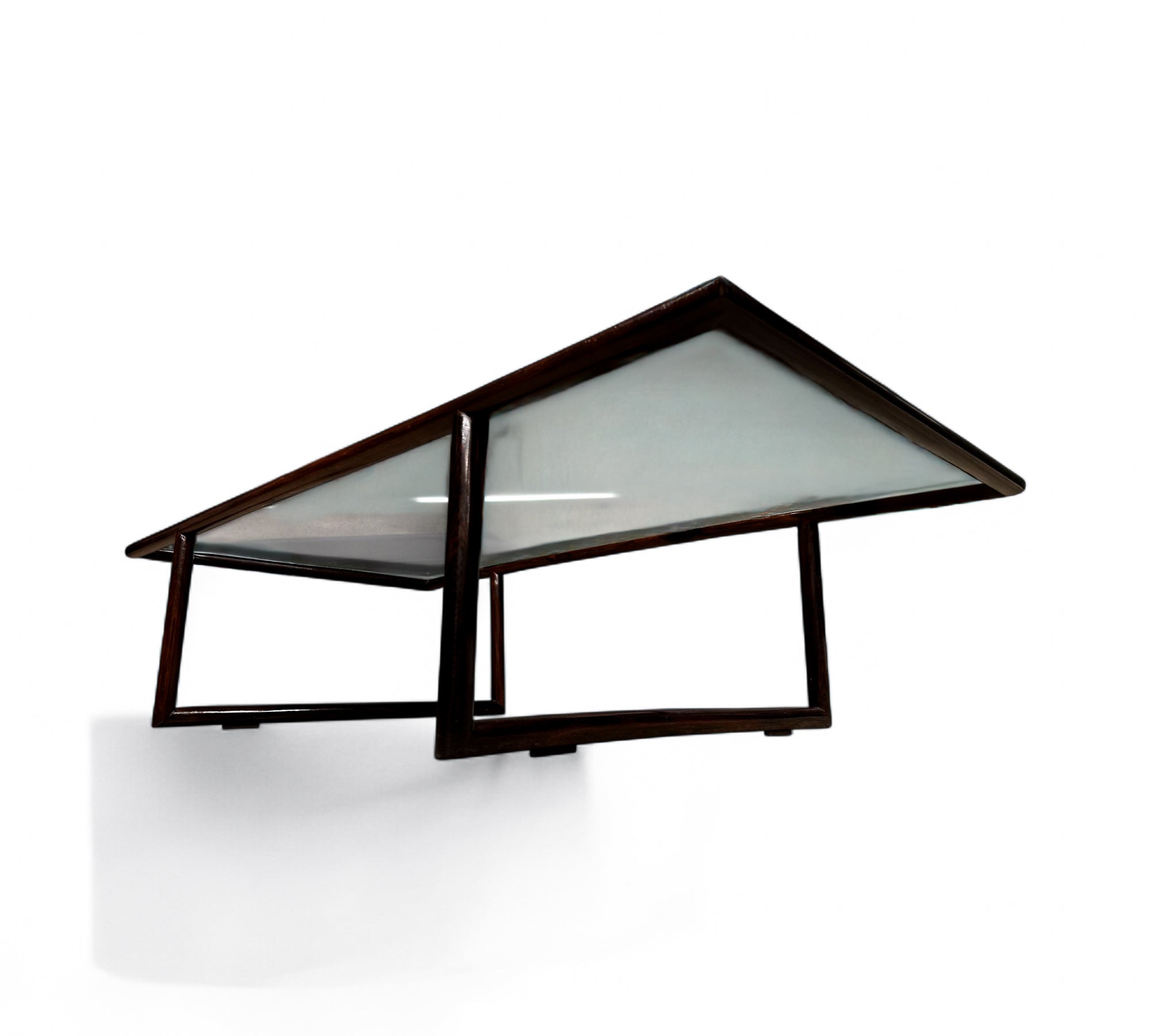 The coffee table, a testament to Tenreiro's ingenuity, features a wooden sandblasted minimal frame that plays a dual role as both legs and a frame for the glass top. This innovative design not only showcases his mastery of materials but also highlights his ability to create furniture that is both visually striking and highly functional.
