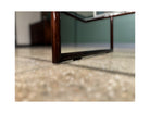 This coffee table is constructed from rosewood and glass and is in excellent condition, with the wood refinished and joints reinforced.