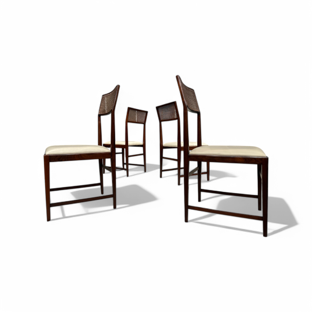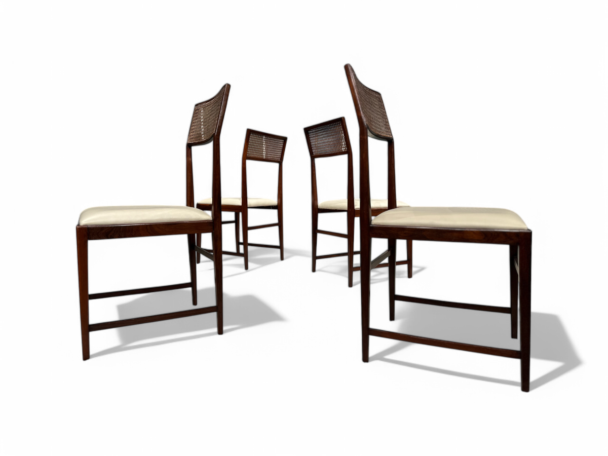 Set of 4 Chairs in Rosewood,Cane & Leather, Joaquim Tenreiro, 1950s - Lot 189