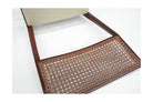 Each chair features four delicate legs and a slim seat upholstered in new off-white leather. The declined backrest is crafted from original caning, adding a touch of classic elegance. The wood has been refinished, preserving its natural beauty while showing minimal marks of age. This set looks fabulous and can seamlessly integrate into any home interior, offering both style and comfort.