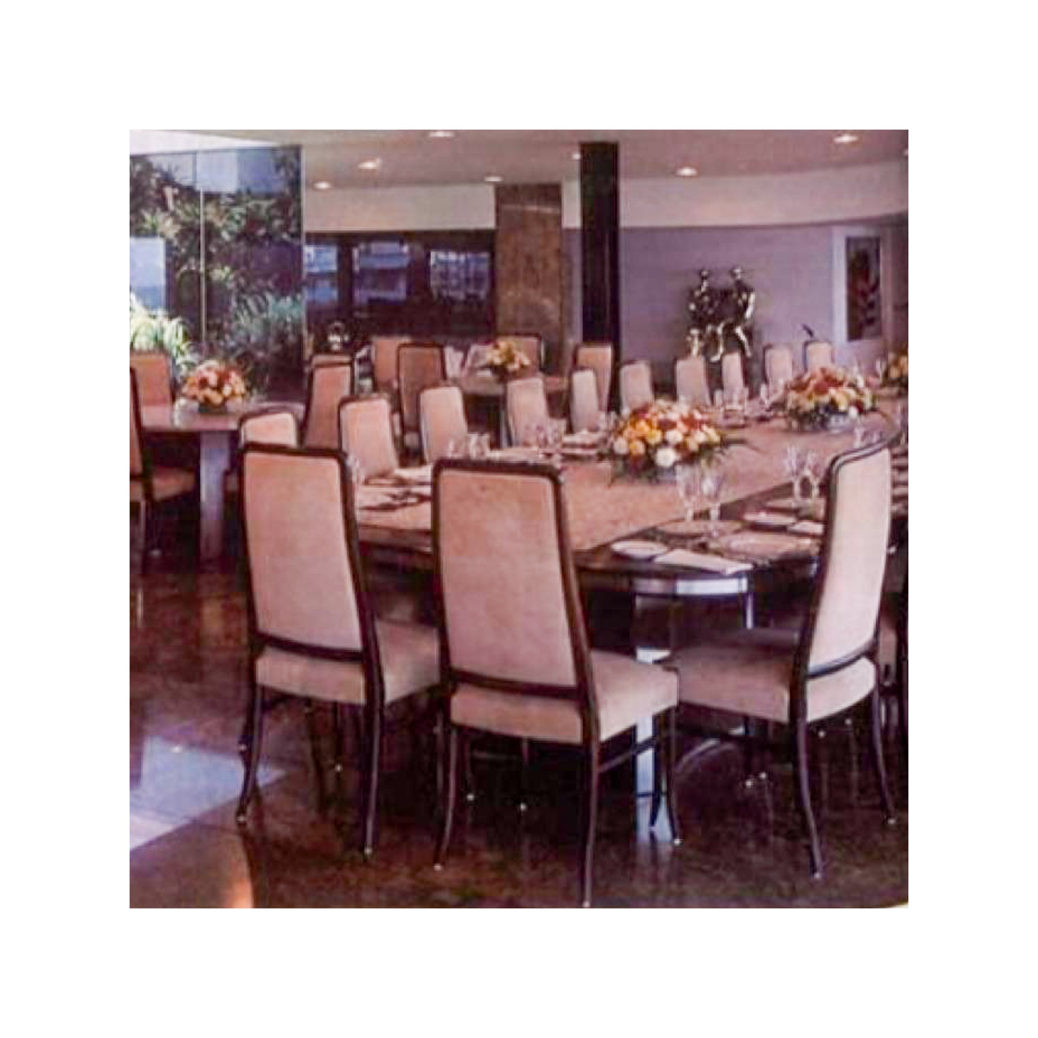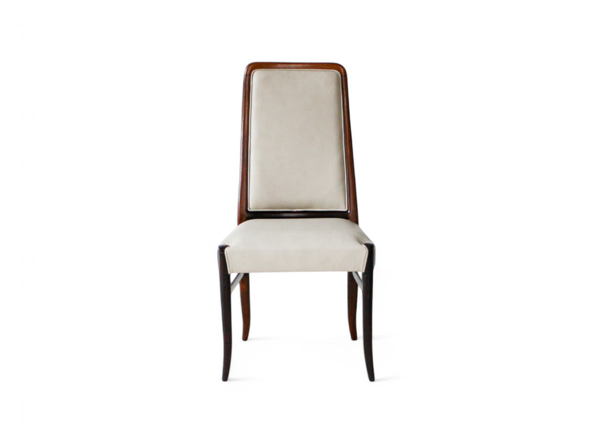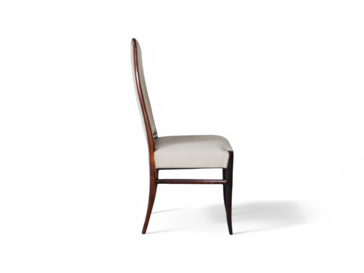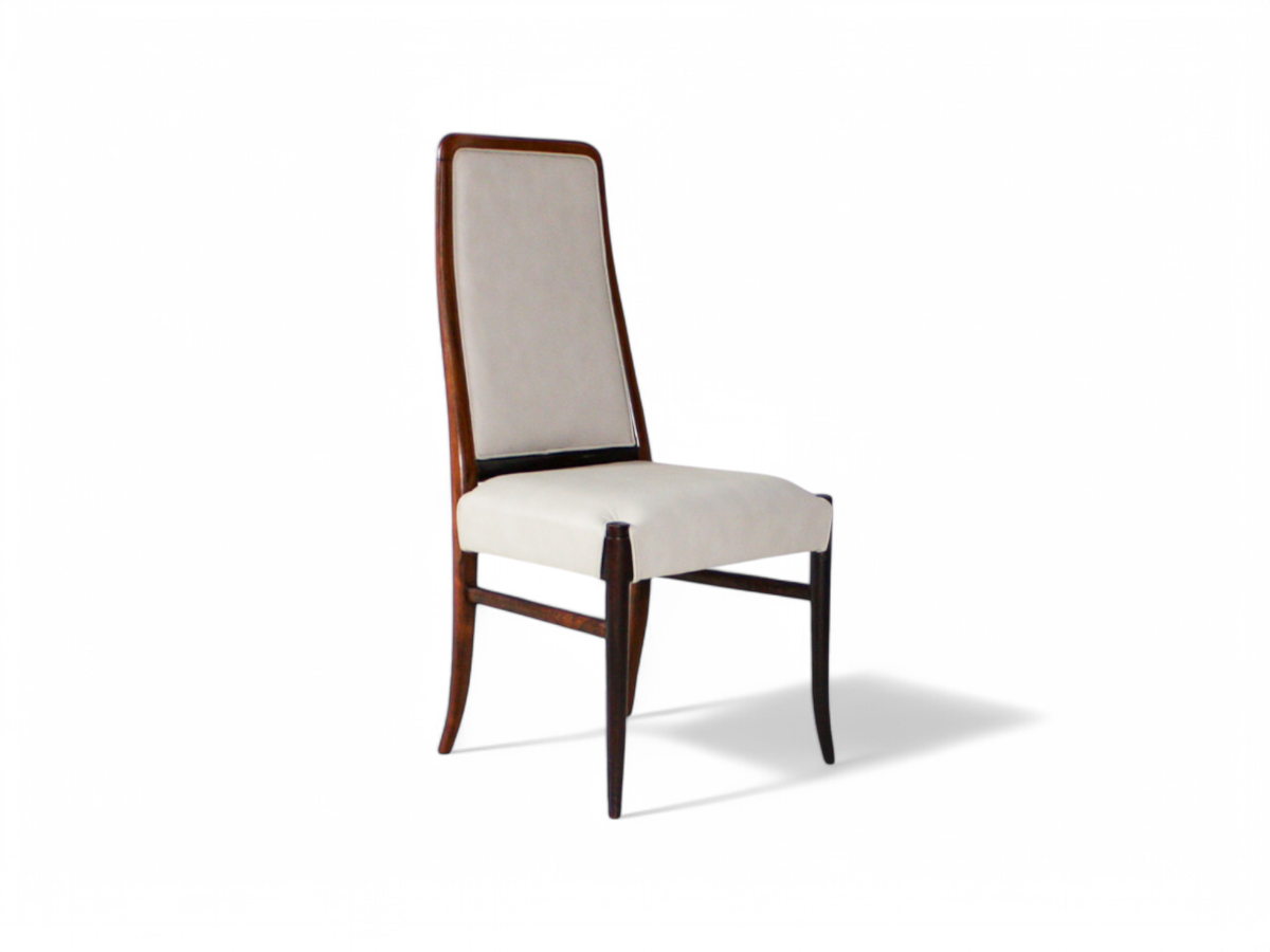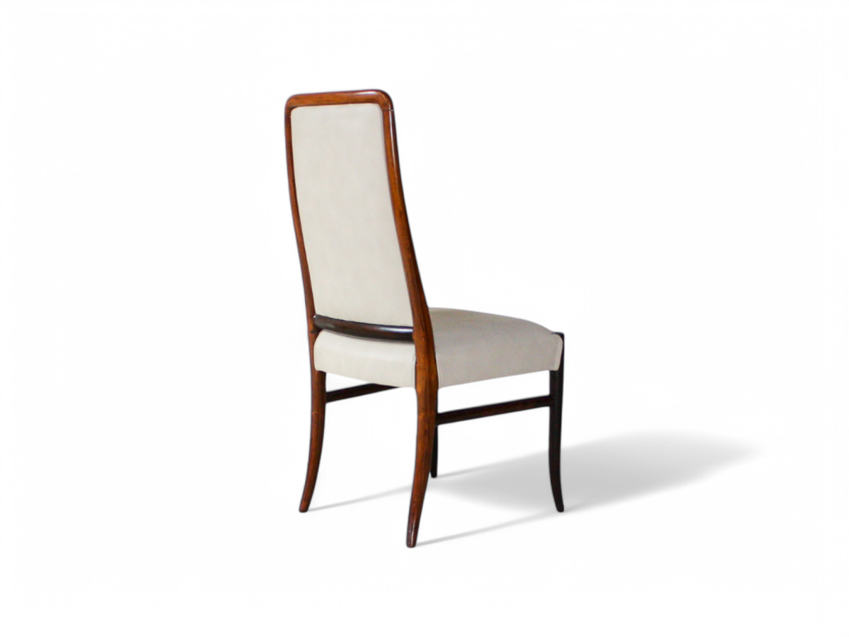 Each chair features a solid Brazilian Rosewood structure upholstered in beige Italian leather. The legs and backrest are delicately curved, providing both elegance and comfort. The woodwork is absolutely stunning, characteristic of Joaquim Tenreiro's craftsmanship. This set was designed specifically for Bloch Editors, a prominent Brazilian publishing and broadcasting conglomerate. Sergio Rodrigues and Joaquim Tenreiro were commissioned to create modern furniture for Bloch’s headquarters in Sao Paulo, and these chairs originally adorned the conference rooms.