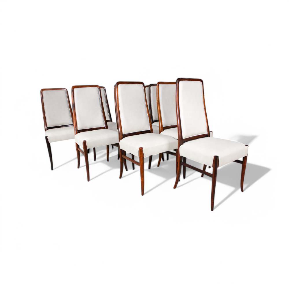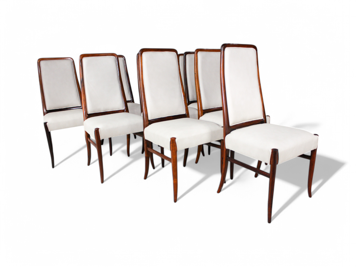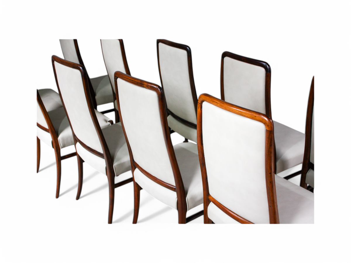 Set of 10 Dining Chairs in Rosewood & Leather, Joaquim Tenreiro, 1960s - Lot 199