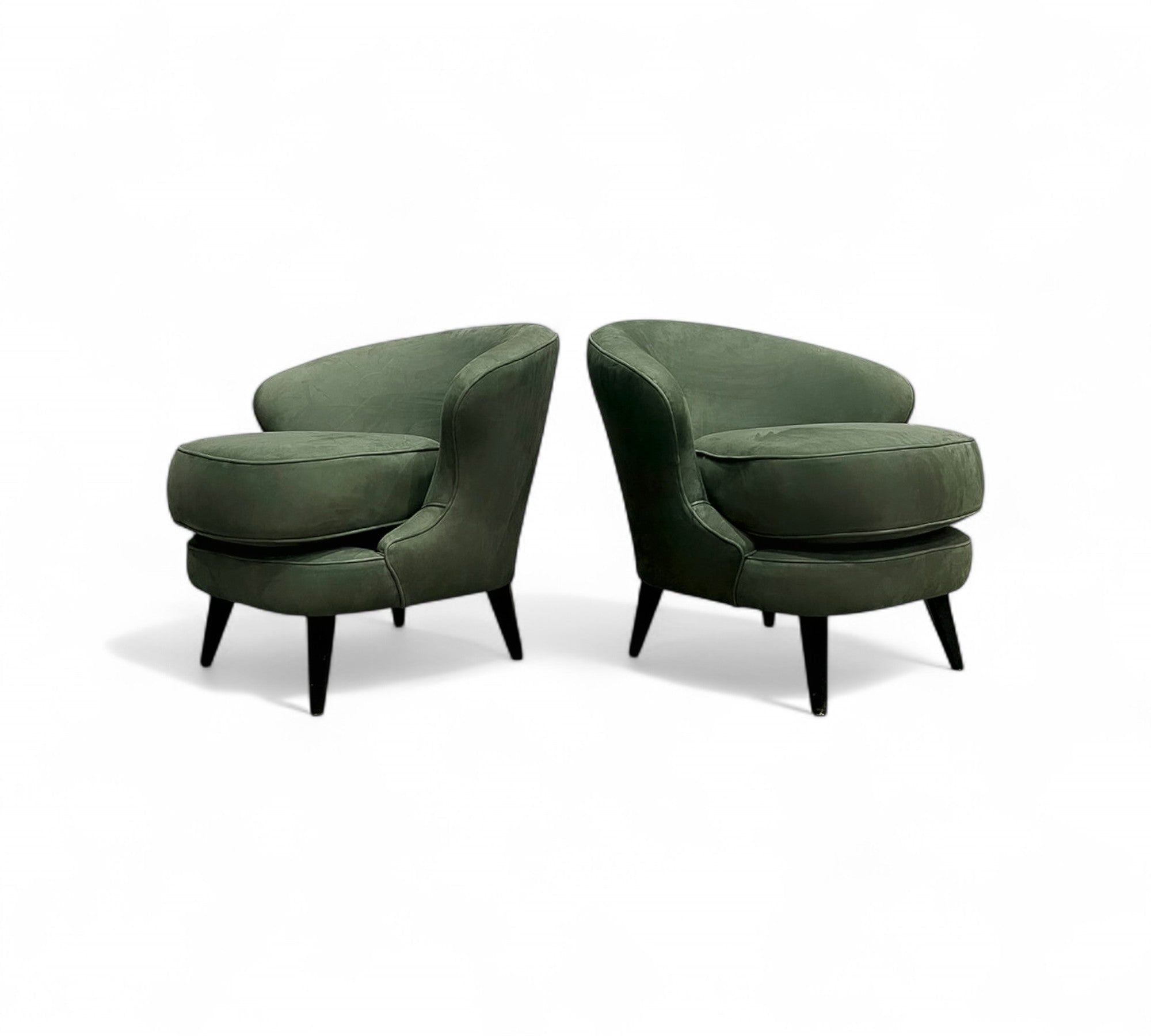 Pair of “Concha” Armchairs in Green Suede, Joaquim Tenreiro, 1960s - Lot 256A