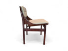 These chairs are made of Brazilian rosewood with leather cushions. The backrest and the seat of the chair have a natural curvature, which is a theme that is seen in many Brazilian mid century modern pieces. The unique style would make this chair a great fit for any type of contemporary, eclectic, or modern environment. While the chairs are of the same model there are small differences in size between them. This was quite often in Brazil during the 60’s as production was still artisanal rather than industrial.