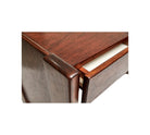 This desk, originally from the Hotel Nacional of São Conrado in Rio de Janeiro, designed by architect Oscar Niemeyer in 1970, retains its heritage plaque. Crafted by Jorge Zalszupin for L’Atelier, it is made from caviuna hardwood with white Formica finishes. Following this project, L’Atelier introduced the Hotel Line, featuring similar styles of coffee tables, benches, and chairs. The wood has been refinished, showing some signs of age while remaining in excellent condition. The desk features six beige drawers on the right side and two brown drawers on the left. Its elegant design makes it suitable for various interior design styles.