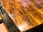 The table features its original, continuous rosewood veneer top, showcasing the rich natural grain and depth of the wood. The surface has been carefully preserved and gently polished, restoring its luster while respecting the integrity of the original veneer and maintaining full authenticity.