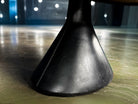 It is supported by a single sculptural concrete base, wrapped in original black hand-stitched leather, paired with an internal iron structure that provides both strength and a refined modernist presence. The iron and leather elements have been professionally cleaned and remain in excellent vintage condition, contributing to the piece’s character and historical value.